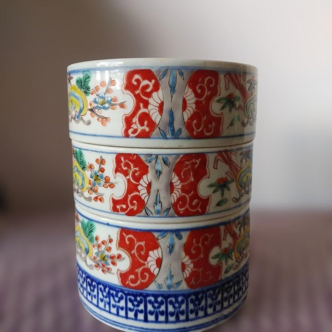 古伊万里 色絵染付 熨斗文三段重 祝儀文様 アンティーク