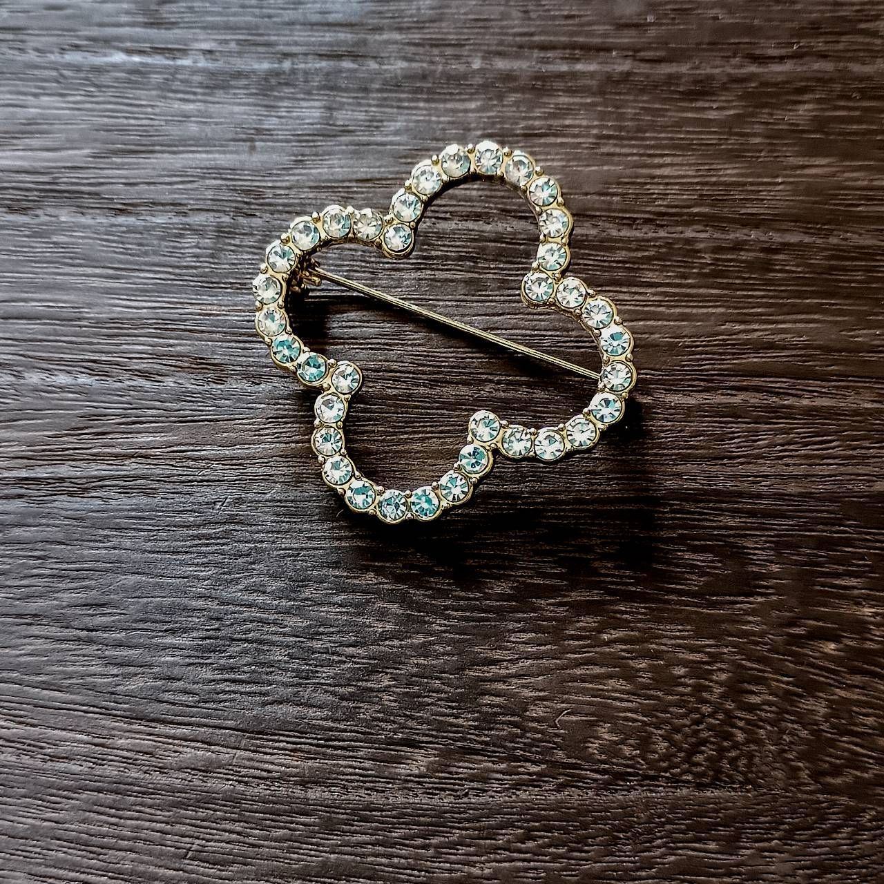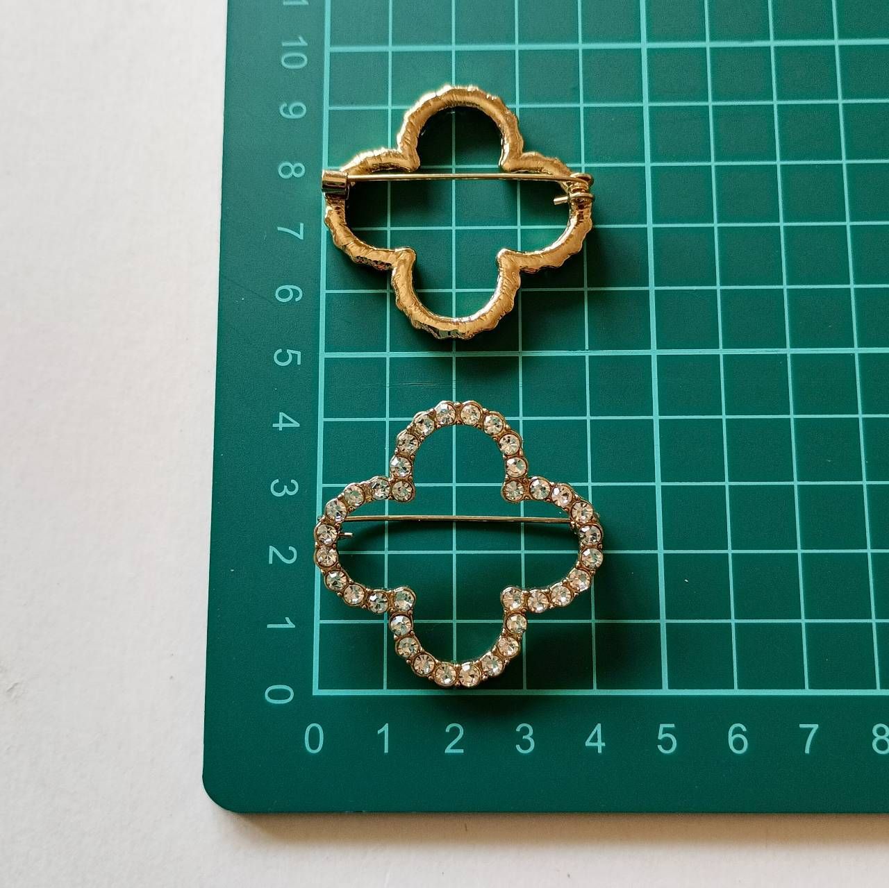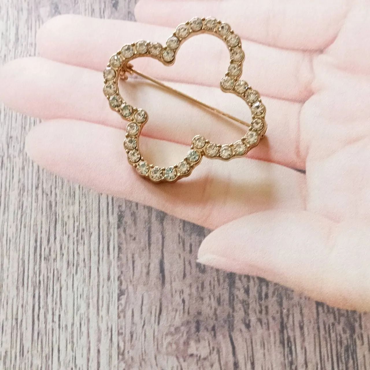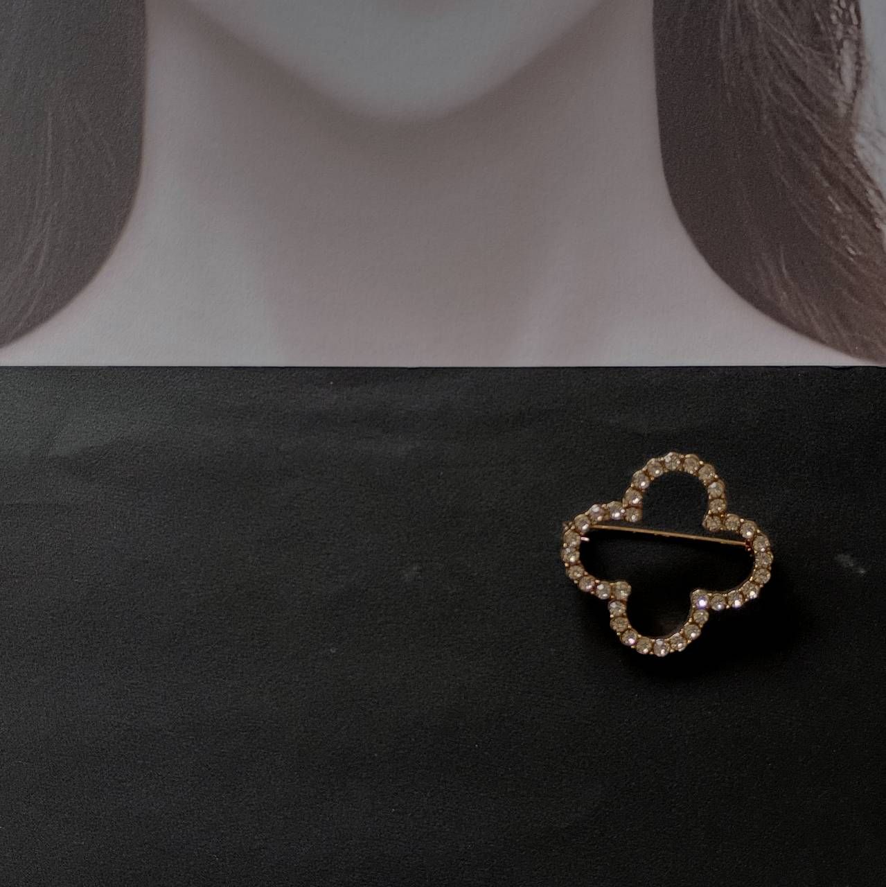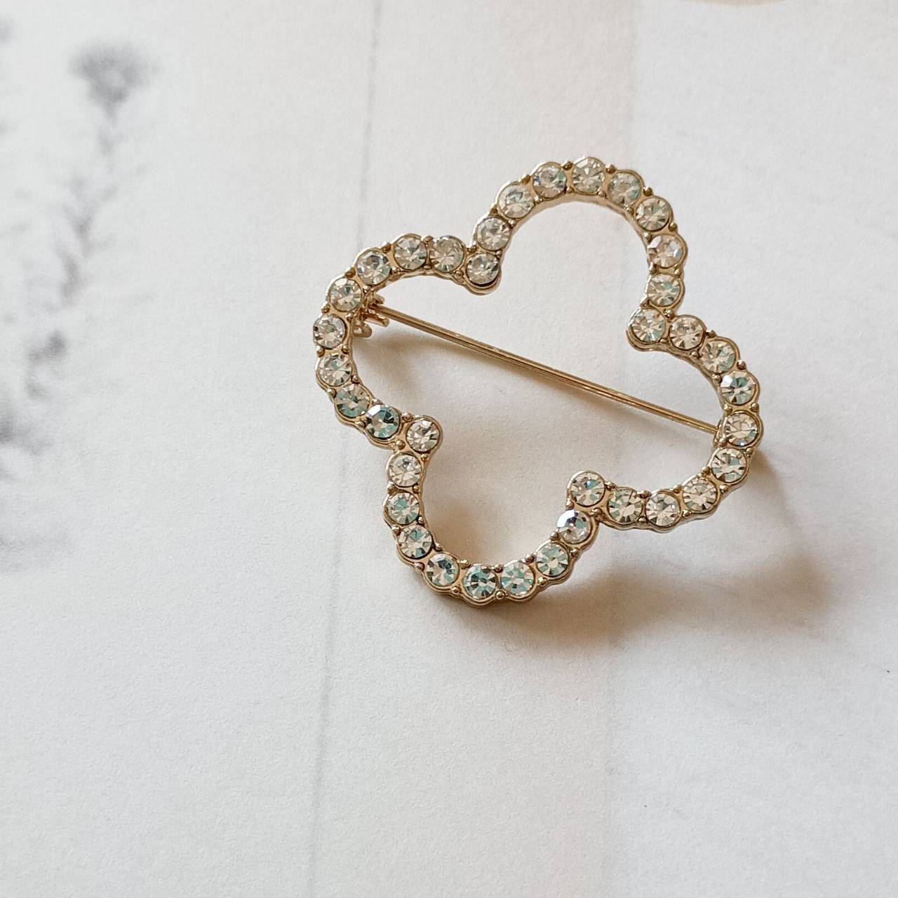 クローバー型ラインストーンのブローチ ゴールドカラー