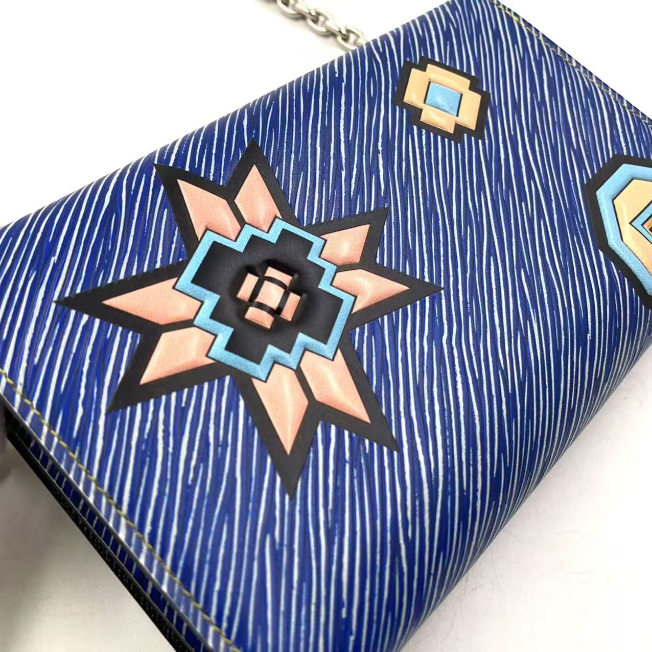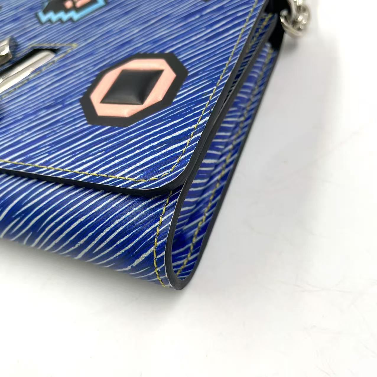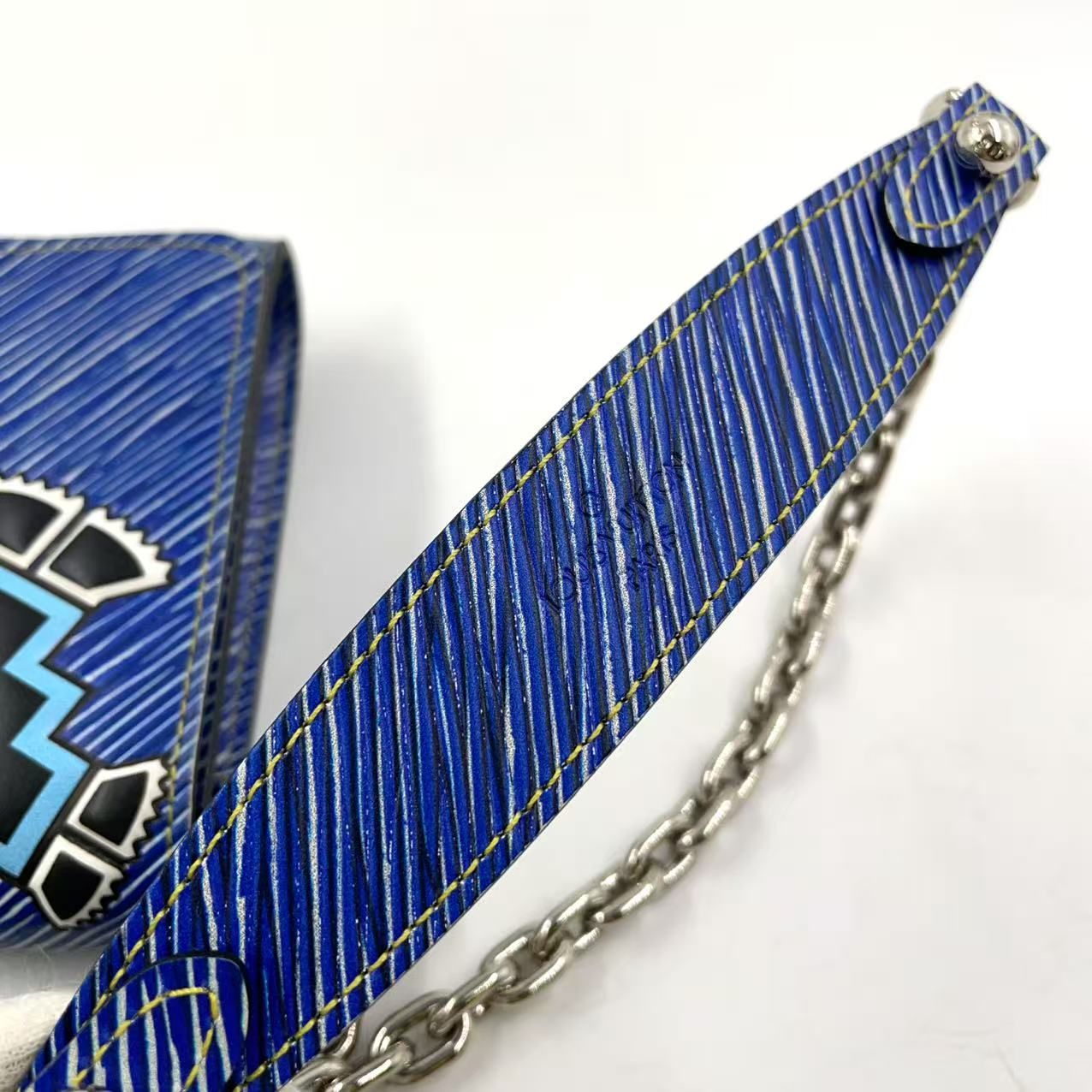 【商品名】LOUIS VUITTON ツイスト PM エピ エピ デニムレザー チェーンウォレット レザー ブルー×マルチカラー ショルダーバッグ シルバー M61490