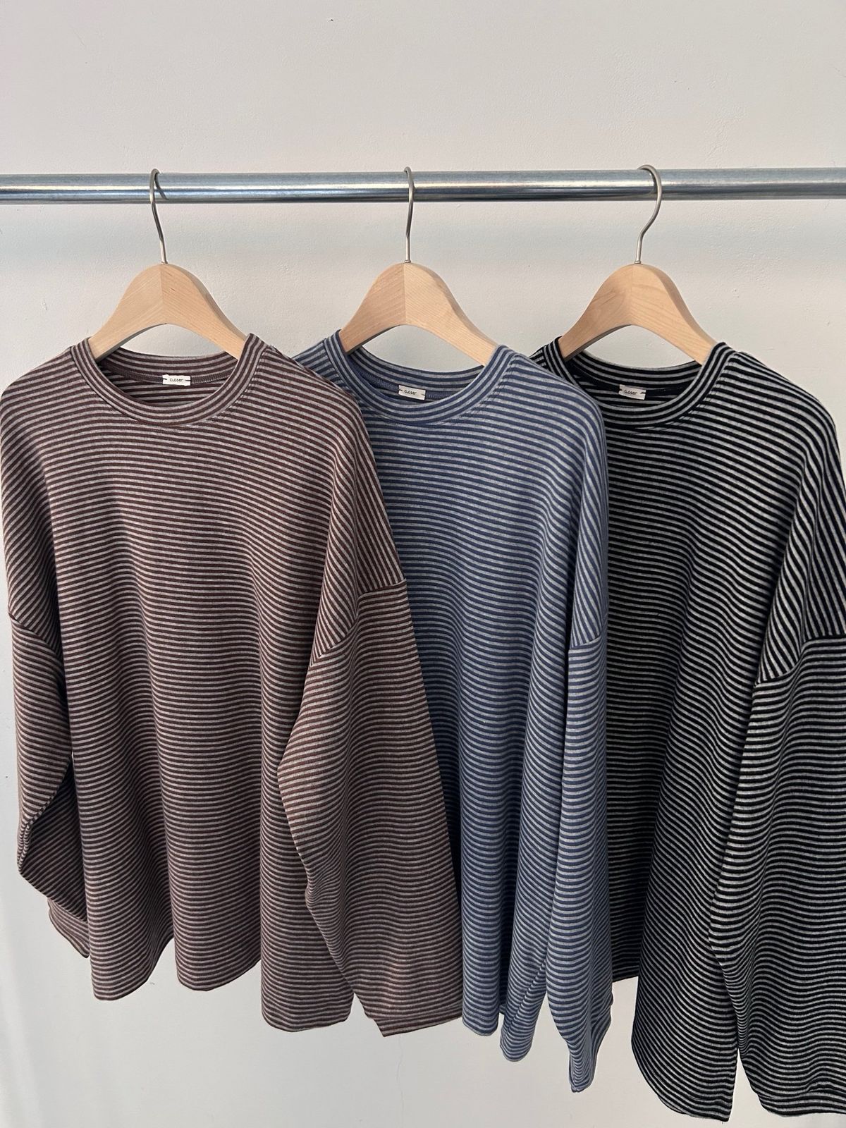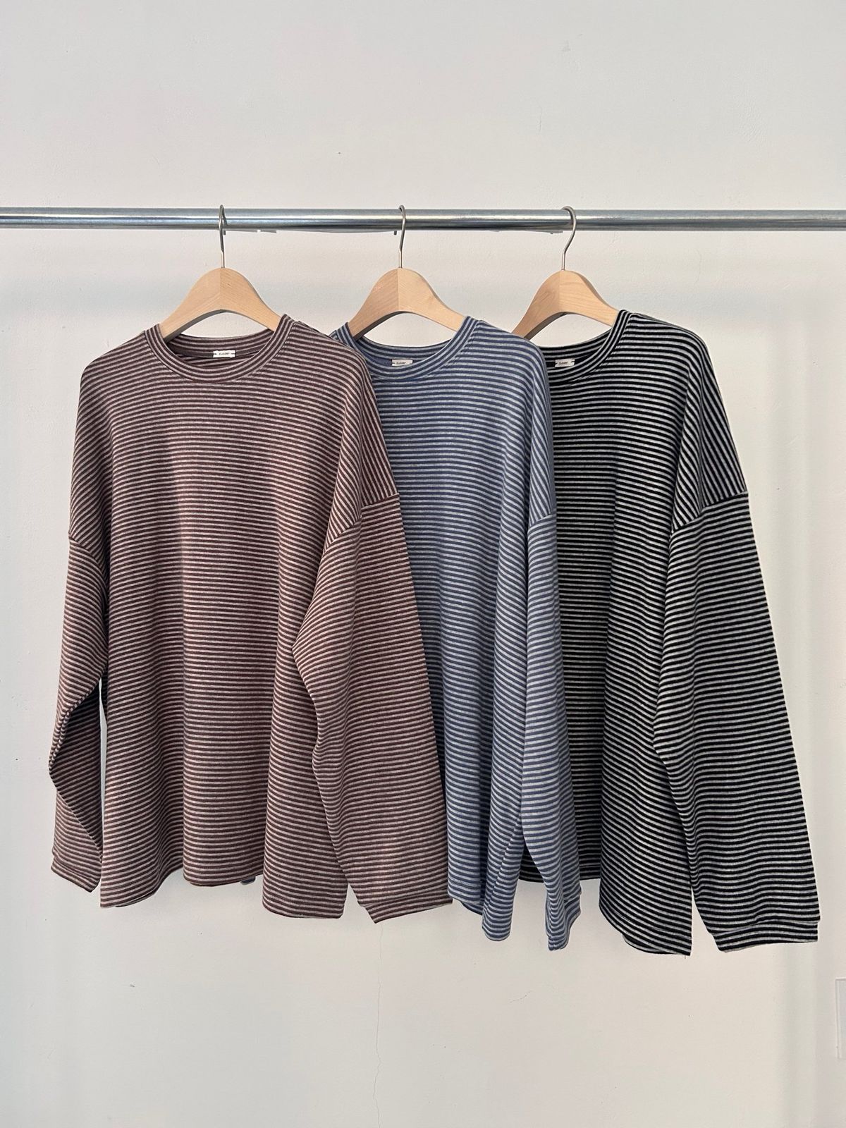 新作)ムースst T (25FW オーバーサイズ カジュアル 起毛 起毛ボーダー柄 細 줄 ストライプ