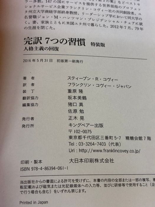 【※書き込み有り】完訳7つの習慣: 人格主義の回復 FCEパブリッシング スティーブン R.コヴィー