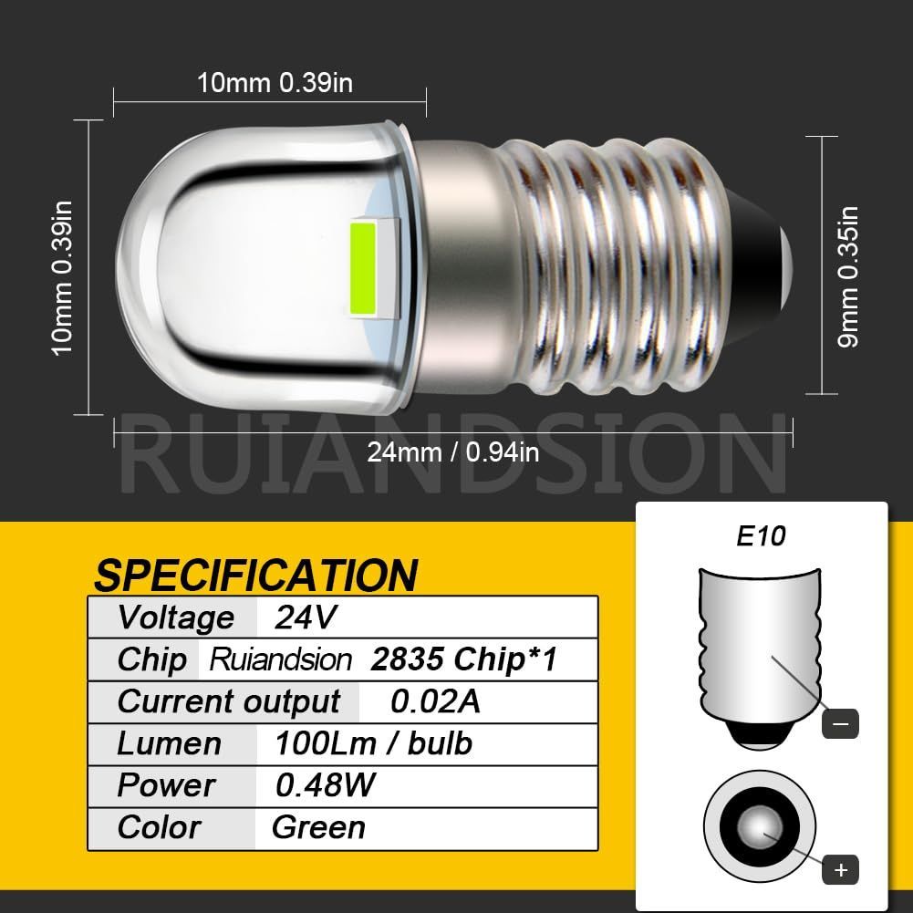 【数量限定】2835 1SMD スーパーブライトグリーン チップ 24V LED LED 電球交換用電球 電球 ホームカーキャビネットホテル照明用 E10 10個パック Ruiandsion