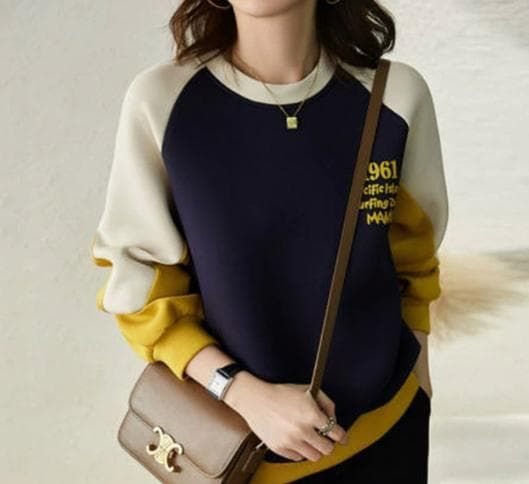 レディース 配色切替 クルーネック スウェット 長袖 トレーナー カジュアル ko1