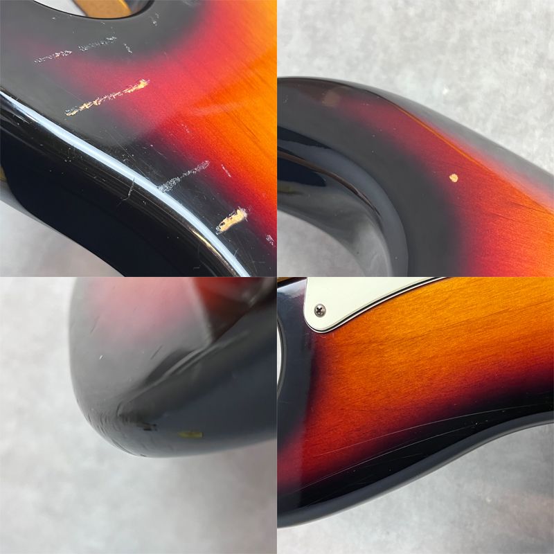 【商品名】 【加古川店】【楽器】 中古 Fender | フェンダー ギター American Vintage 62 Stratocaster TX 1997(98)年製 【471】 【モデル名】 American Vintage 62 Stratocaster TX 【サイズ】 ・NECK:Maple ・BODY:Alder ・PICKUPS:Fender Texas Special ・FINGER BOARD:Rosewood ・本体重量:約 3590g ※実寸サイズとなる為、多少の誤差が生じます。予めご了承くださいませ。 【 商品について 】 ・1997(98)年製 Fender American Vintage 62 Stratocaster TX 多くのギタリストが憧れるエレキギター2大メーカーのひとつ、 ギターのスタンダートを生み出した大手有名メーカー。 本機は現在ビンテージモデルのスタンダードとして非常に高い評価を受ける1982年スタートの「American Vintage」シリーズより、62年型のストラトキャスターをモチーフにした一本。バックキャビティにYAMANOのサインがあり、山野楽器がオーダーしたYAMANOモデルとみられる。 王道の3-Color Sunburstは経年によって良い雰囲気を感じさせ、渋い佇まい。 ラッカー塗装が施されたボディにはアルダーを採用。ネックにはメイプルにスラブ張りのローズウッド指板を採用した62年仕様の伝統的なウッドマテリアル。ネック、ボディデートはそれぞれ97年の10月、9月となっている。 この時期のAmerican Vintageの特徴でもある比較的スリムなネックシェイプはプレイヤーを問わず握りやすい仕様。7.25ラジアスの指板にヴィンテージスタイルのフレットを搭載し、当時スペックを忠実に再現。 ハードウェア類も抜かりなく、マシンヘッドにはヴィンテージスタイルのクルーソンペグを搭載。ブリッジにはオリジナルのトレモロブリッジを採用。 ピックアップにはFender Custom Shopにも使用されているUS製のTEXAS SPECIALをマウントした特別仕様。クリーン時には存在感のあるサウンドを、ドライブ時にはファットで粘りのあるサウンドを出力。セレクターは5Way仕様となっており、使い勝手のよい仕様に。 現行の後継モデルとはまた違う弾き心地、サウンドを提供する一本。 ※ロゴ欠けあり、バックパネルの止めネジ、アーム交換 使用による弾き傷や擦り傷、多少の打痕等はあるが 演奏に支障はなく調整されたプレイヤーズコンディション。 ・ブランド:Fender | フェンダー ・ネック状態 : ほぼストレート ・フレット残り : 7~8割 ・トラスロッド : 余裕あり 【 付属品 】 ハードケース0024 ブリッジカバー 取り外した3Way SW 【付属品についてのご案内】 ・掲載画像に写っているものが全ての付属品です。 ・中古品のため、付属品に使用感や多少の傷みがある場合がございます。 ・商品ランクは付属品の状態を含みません。 【 発送元地域 】 こちらの商品は兵庫県からの発送となります。 【 注意事項 】 当ショップは複数の実店舗からの商品を出品しております。 同一商品であっても販売金額の異なるものがございます。 また ・お値引き ・専用出品 ・お取り置き ・セット販売商品のバラ売り の各対応はお断りしております。 ご相談の最中であっても先にご購入頂いた方を優先と致しますので予めご了承ください。 実店舗、もしくは他サイトでも販売を行っている場合があります。 万一売り違いの際はご容赦ください。 【管理番号】20172000365166 #お宝市番館加古川店