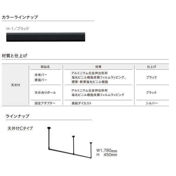 商品名:30017004 ハンギングバー H1 天井付 Cタイプセット ブラック 約W1780mm×H450mm
