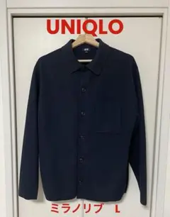 ユニクロ ミラノリブシャツカーディガン ネイビー Lサイズ