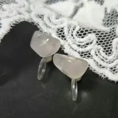 シンプル ノンホール イヤリング 天然石 ローズクォーツ アシンメトリー