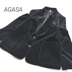 【AGASA】 アガサ ベロアテーラードジャケット 上品 ブラック お洒落ボタン