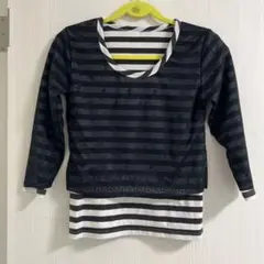 重ね着風黒白ストライプTシャツ