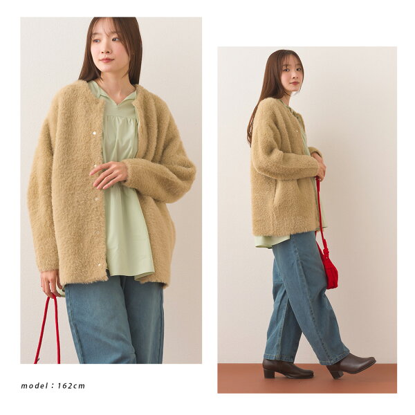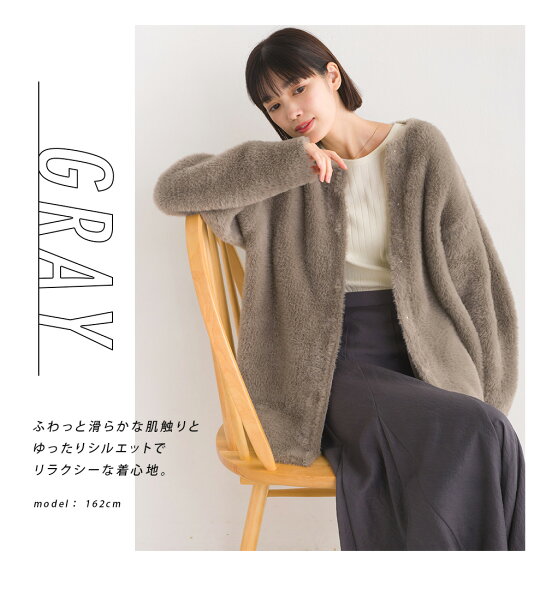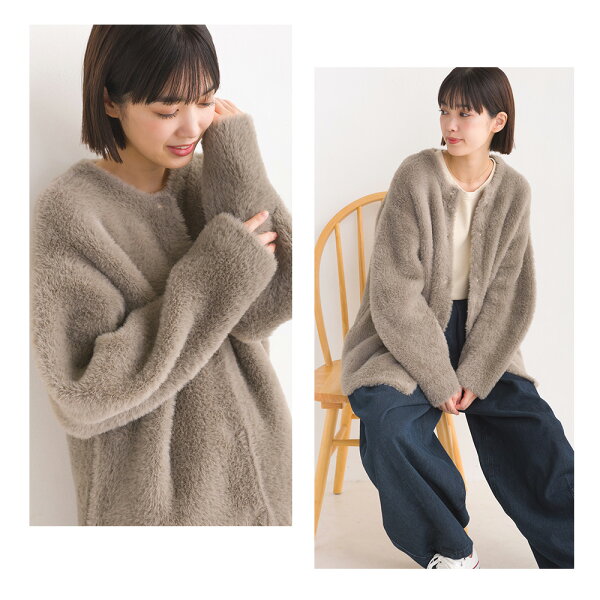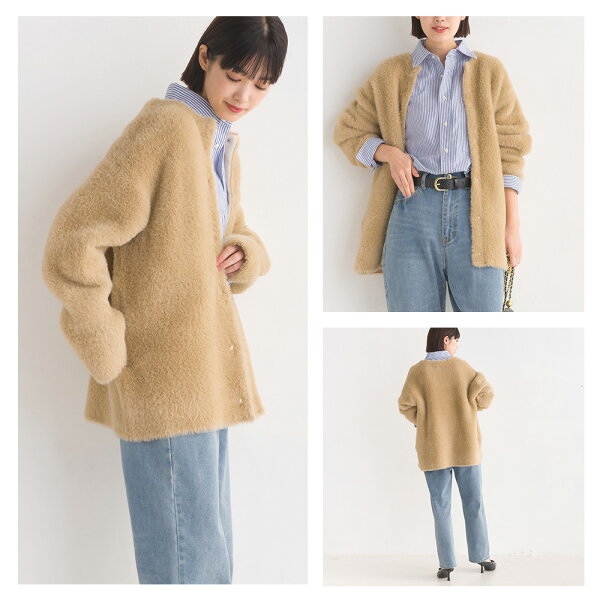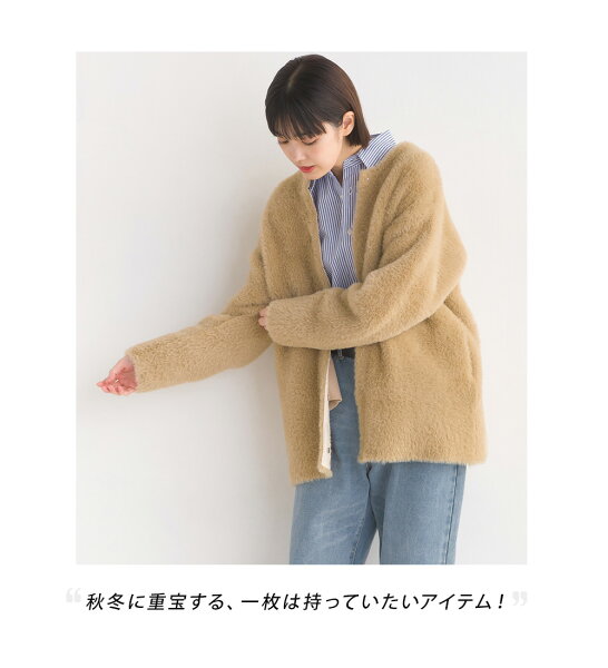 【hbB】【OMNES Supremo】フェザーヤーンダブルフェイスニットカーディガン レディース シャギーカーディガン フリーサイズ カジュアル 長袖 ふわふわ 羽織り 防寒対策 秋冬 HAPTIC ハプティック