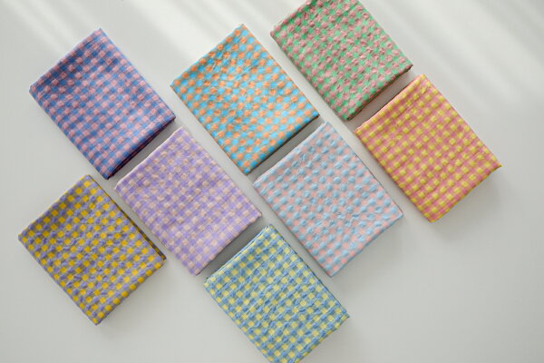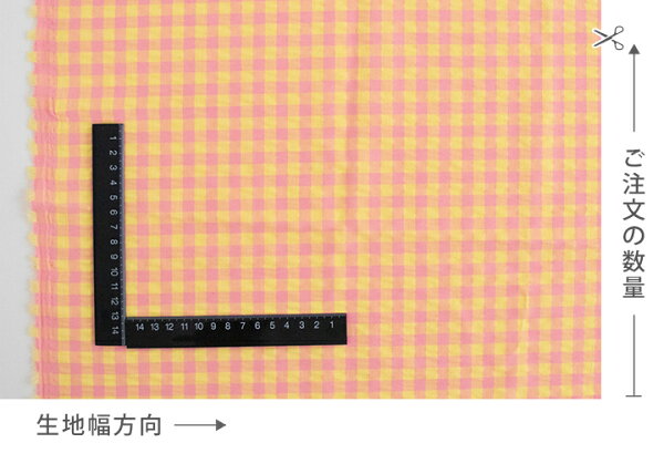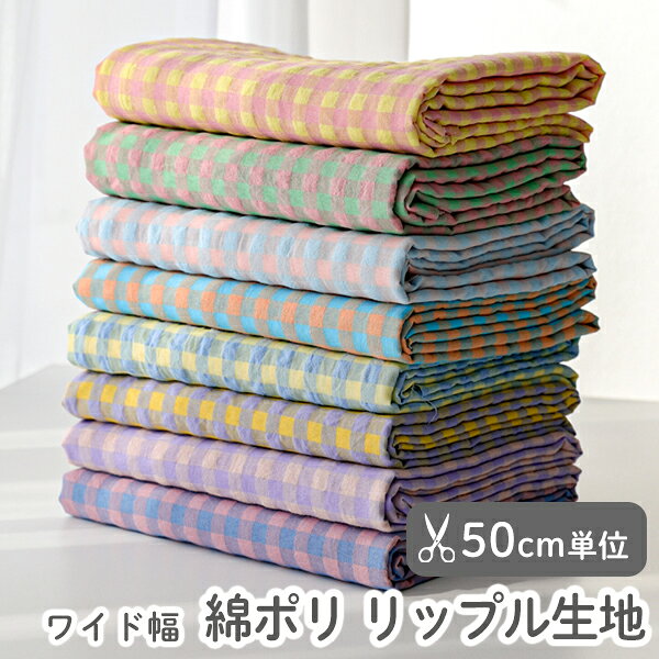 生地 布 入園入学 北欧風 綿ポリ リップル生地/幅142cm ≪ ぽこぽこ ギンガムチェック ≫ 【50cm単位販売】【男の子】【女の子】【チェック】【ピンク】【黄色】【青】【水色】【オレンジ】【緑】ゆめかわいい 綿ポリエステル コットン 幅広