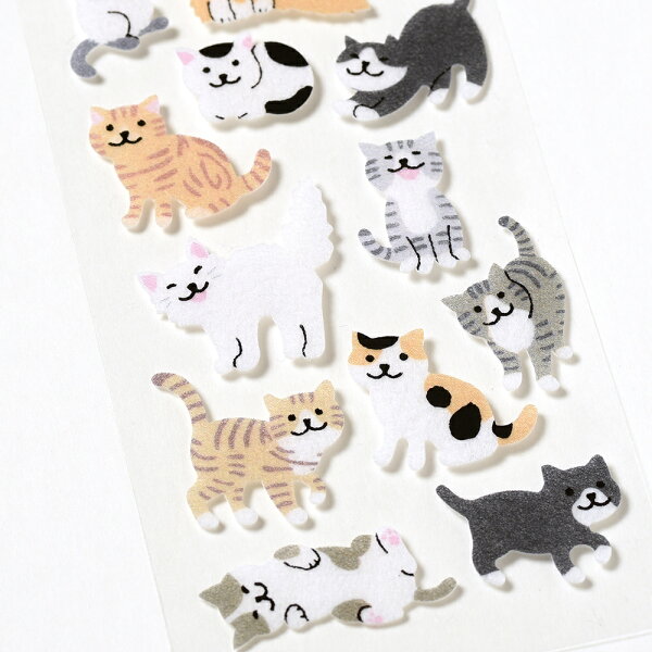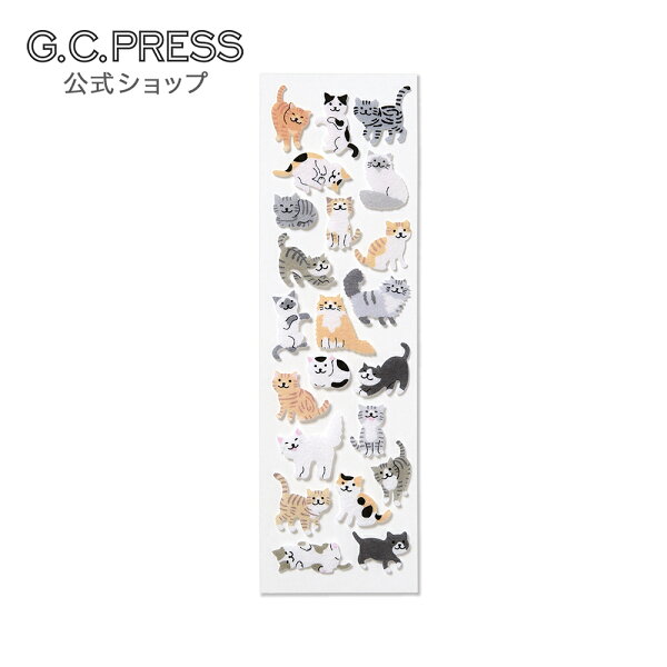 シール 1シート22ピース |起毛 猫 [133-71] | G.C.PRESS(ジーシープレス) | 文房具 ふわふわシール 起毛シール 封シール デコレーションシール 猫 キャット 茶トラ 三毛猫 キジトラ アメリカンショートヘア かわいい