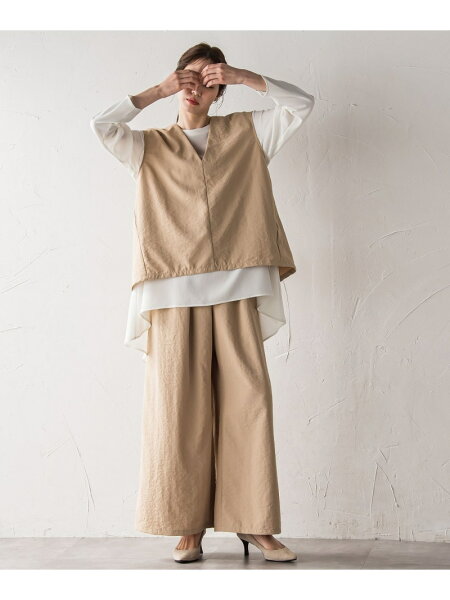 【SALE/40%OFF】【biyori】"楽ちんキレイ"リネン風ワイドパンツ≪洗濯機で洗える≫ la.f... ラ・エフ パンツ その他のパンツ ブラック ベージュ【RBA_E】【送料無料】[Rakuten Fashion]