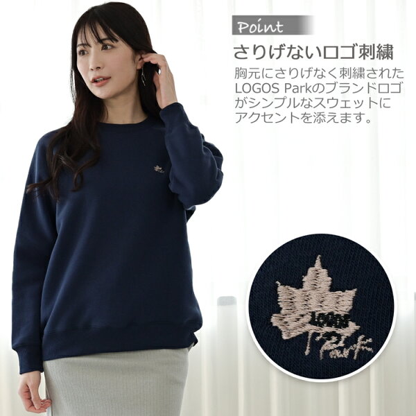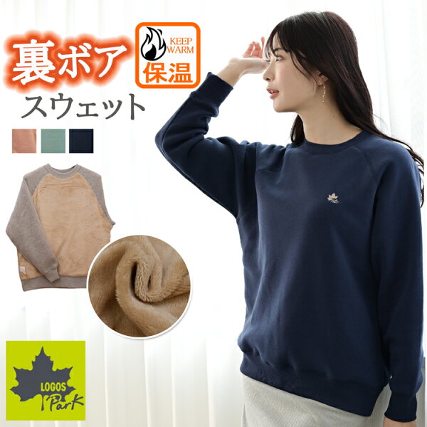 ロゴス パーク 裏ボア 裏起毛 スウェット トレーナー 上 レディース トップス 秋 冬 ブランド プルオーバー ロゴ 厚手 刺繍 長袖 丸首 あったか 防寒 綿混 綿 無地 ピンク ブルー キャメル ネイビー M/L