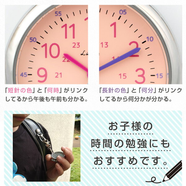 【 お子さんの時間勉強にもおススメ 】針と数字の色がリンクしているので、時間読みのサポートとして使えます。
