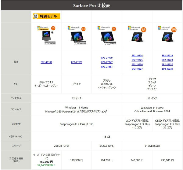 【Microsoft 公式ストア】Surface Pro 12 インチ Snapdragon X Plus 16GB 512GB Windows 11 Home EP2-27779/EP2-27747/EP2-27667 サーフェス マイクロソフト 正規販売店 Copilot+ PC ノートパソコン