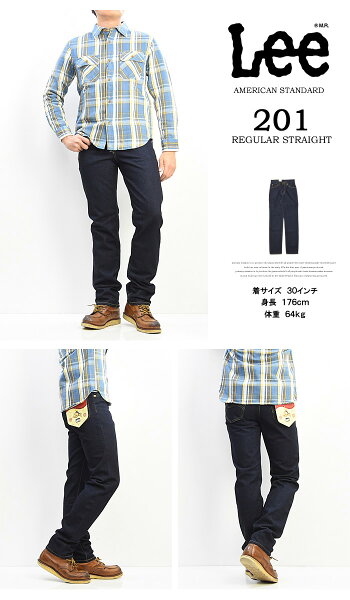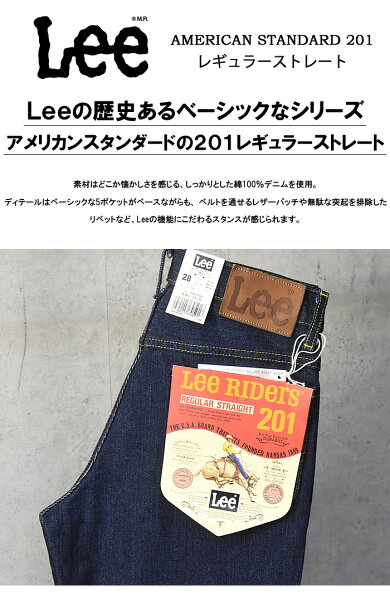 Lee リー アメリカンスタンダード 201 レギュラーストレート デニム ジーンズ 02010-100 股上深め パンツ メンズ 大きいサイズあり 日本製 定番 Lee 送料無料 ワンウォッシュ