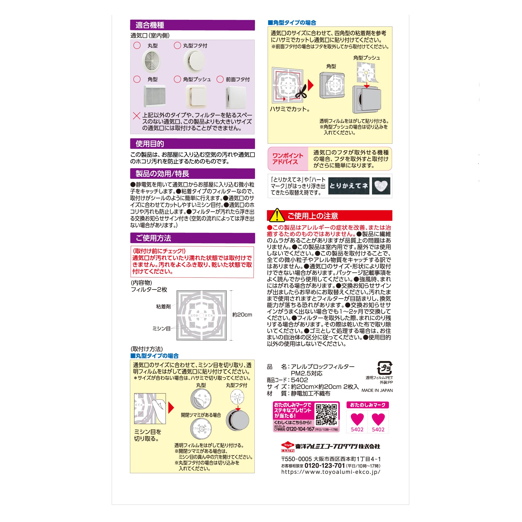 | 商品種別: | フィルたん アレルブロックフィルター お部屋の 通気口用 |
