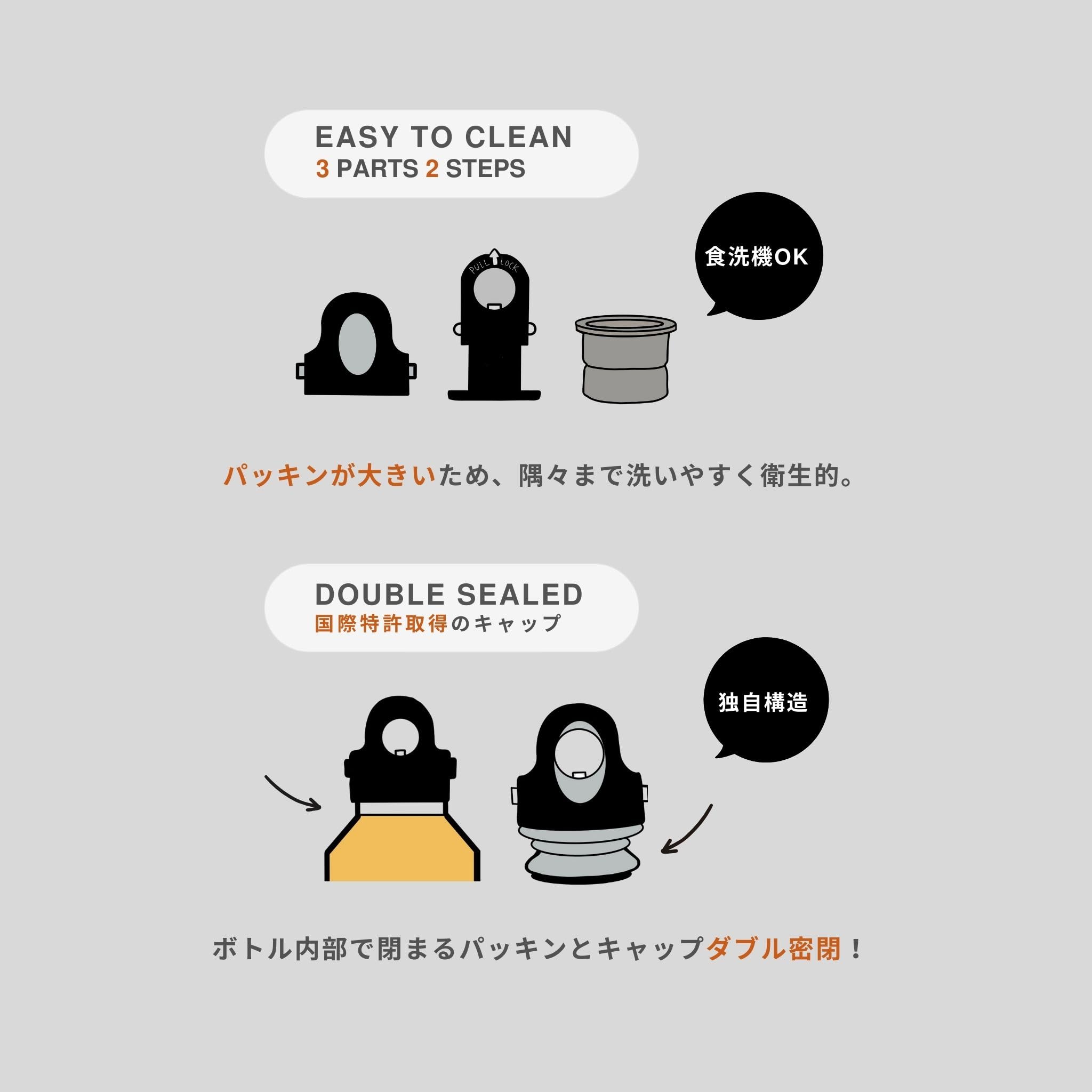 | お手入れ: | ボトル:手洗い/キャップ・パッキン:食洗機対応 |