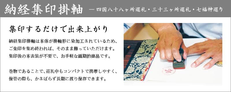 この納経集印掛軸は本体が掛軸形に染められているため、ご朱印を集め終われば豪華な掛軸として飾れます。