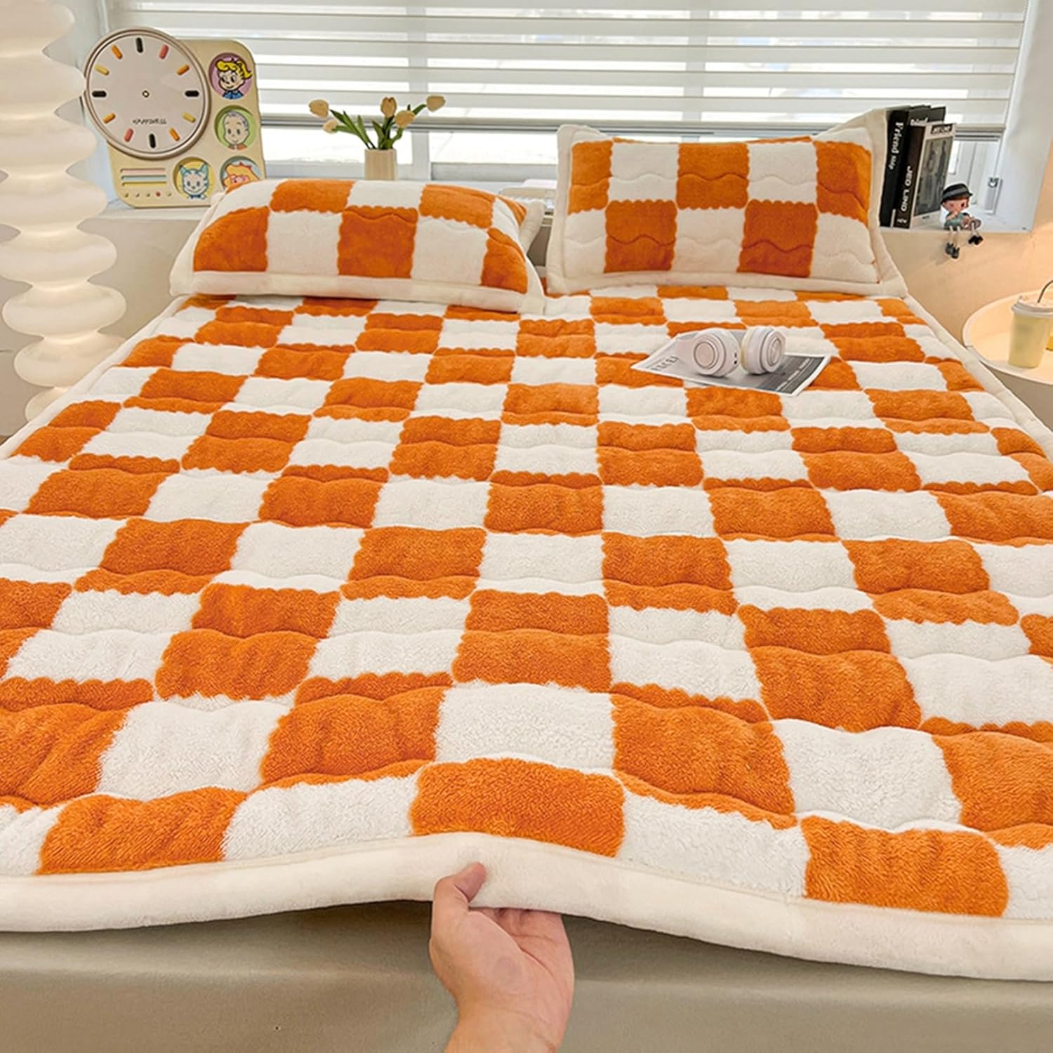 高重量の厚みのあるフランネルミルクベルベットの豪華なフィットシーツは、引っ張り耐性と洗濯耐性があり、髪にフィットし、柔らかく完全な暖かさ、ふわふわで柔らかく肌に優しい、あなたとあなたの家族に快適で居心地の良い睡眠体験を提供します。