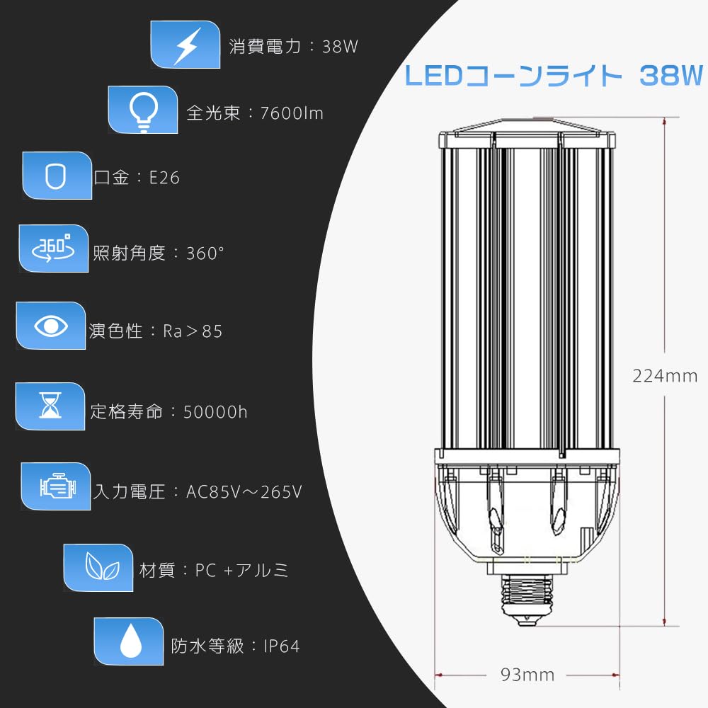 | 品番・型番: | LEDCORNLIGHT-38W-E26 |