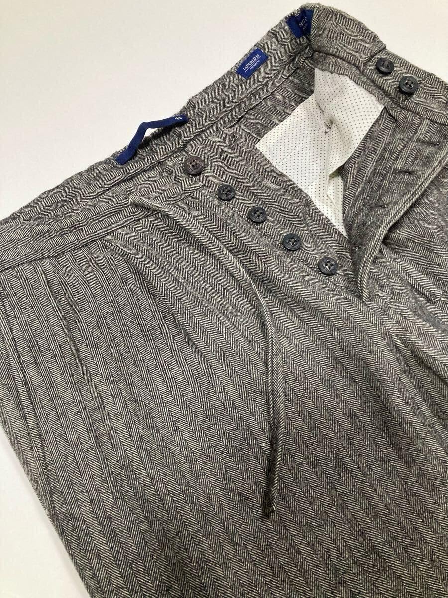 「INCOTEX ヘリンボーン柄 コットン混 ウール ドローコード×ボタンフライ プリーツパンツ ルーマニア製 46