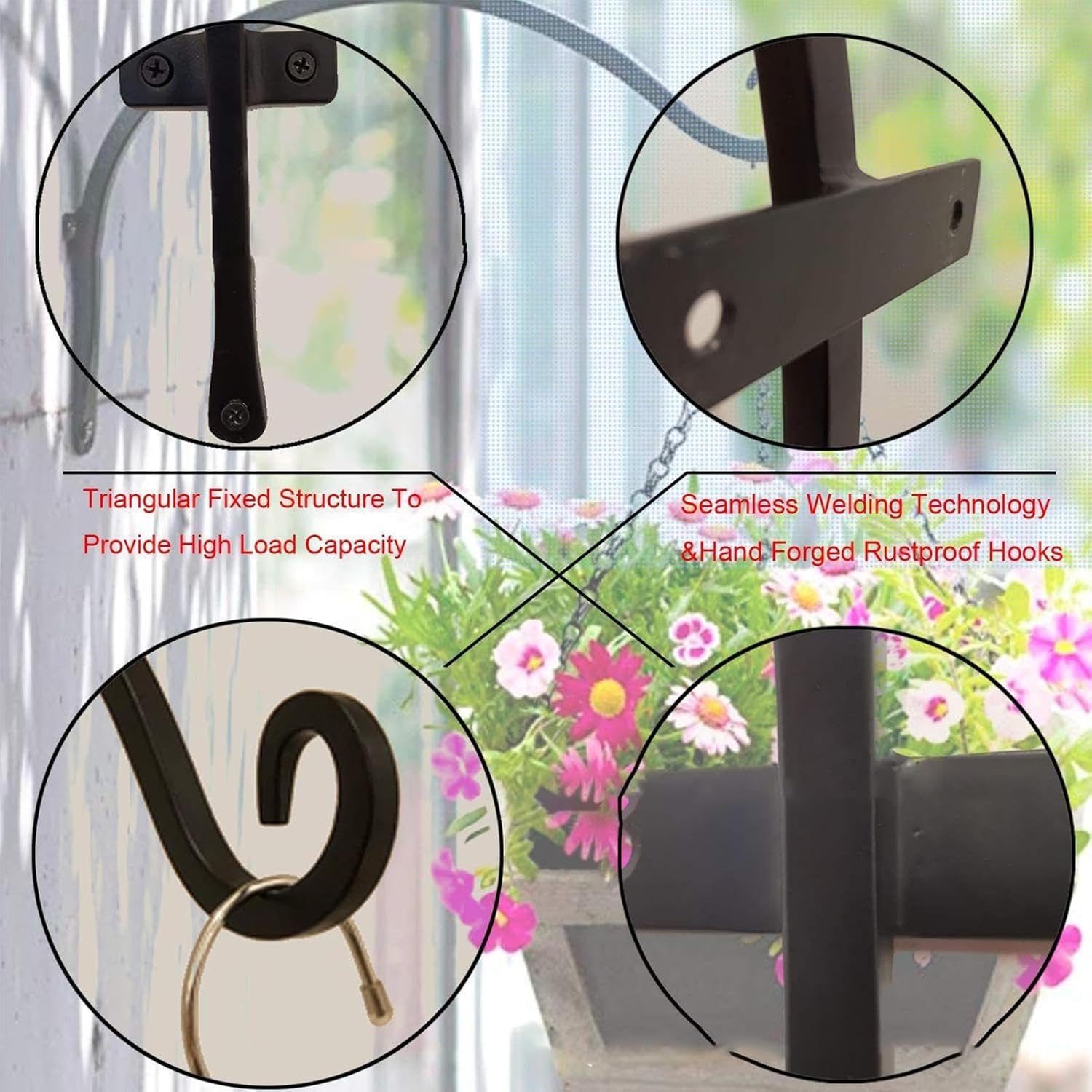 1 個 * 厚い正方形鋼壁植木鉢フック