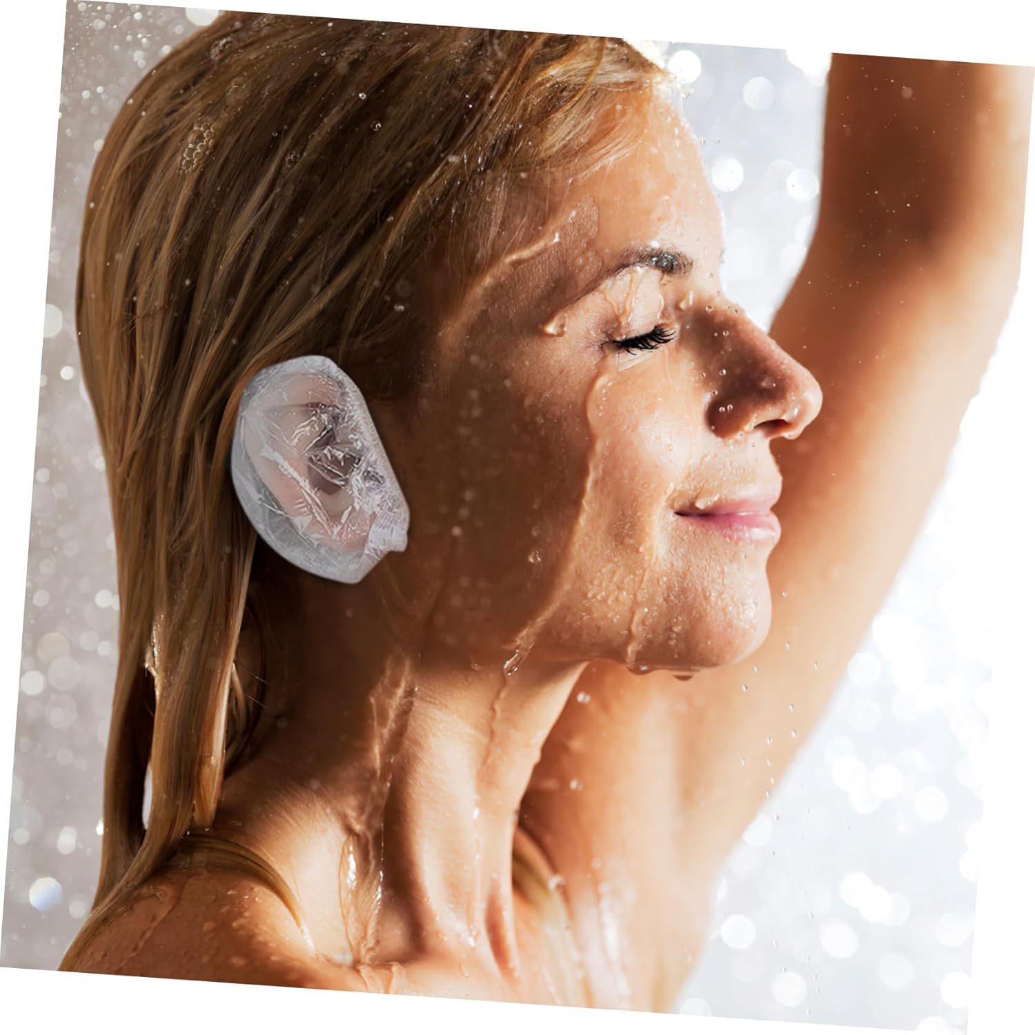 100個 染毛剤イヤーマフ 大人用のイヤーシャワーキャップ 毛染め用の耳カバー イヤープロテクター 耳のシャワーカバー 髪を染めるイヤーカバー Transparent プラスチック