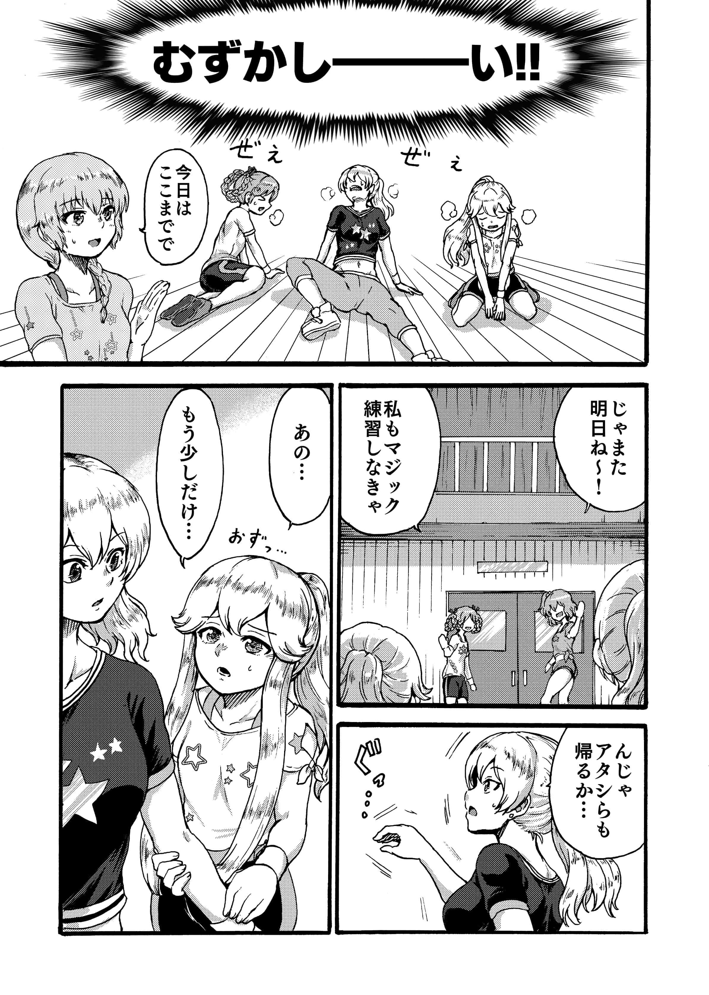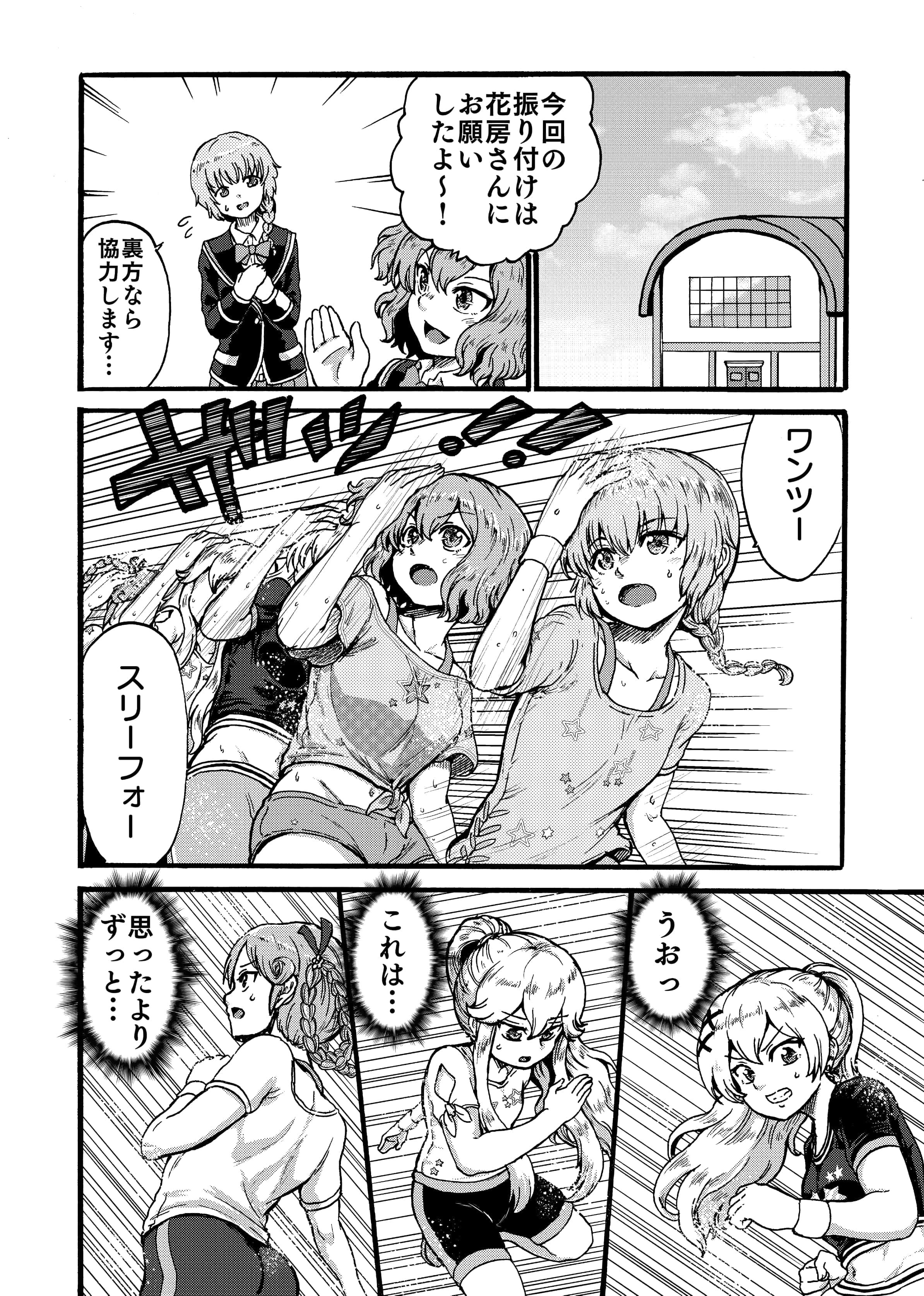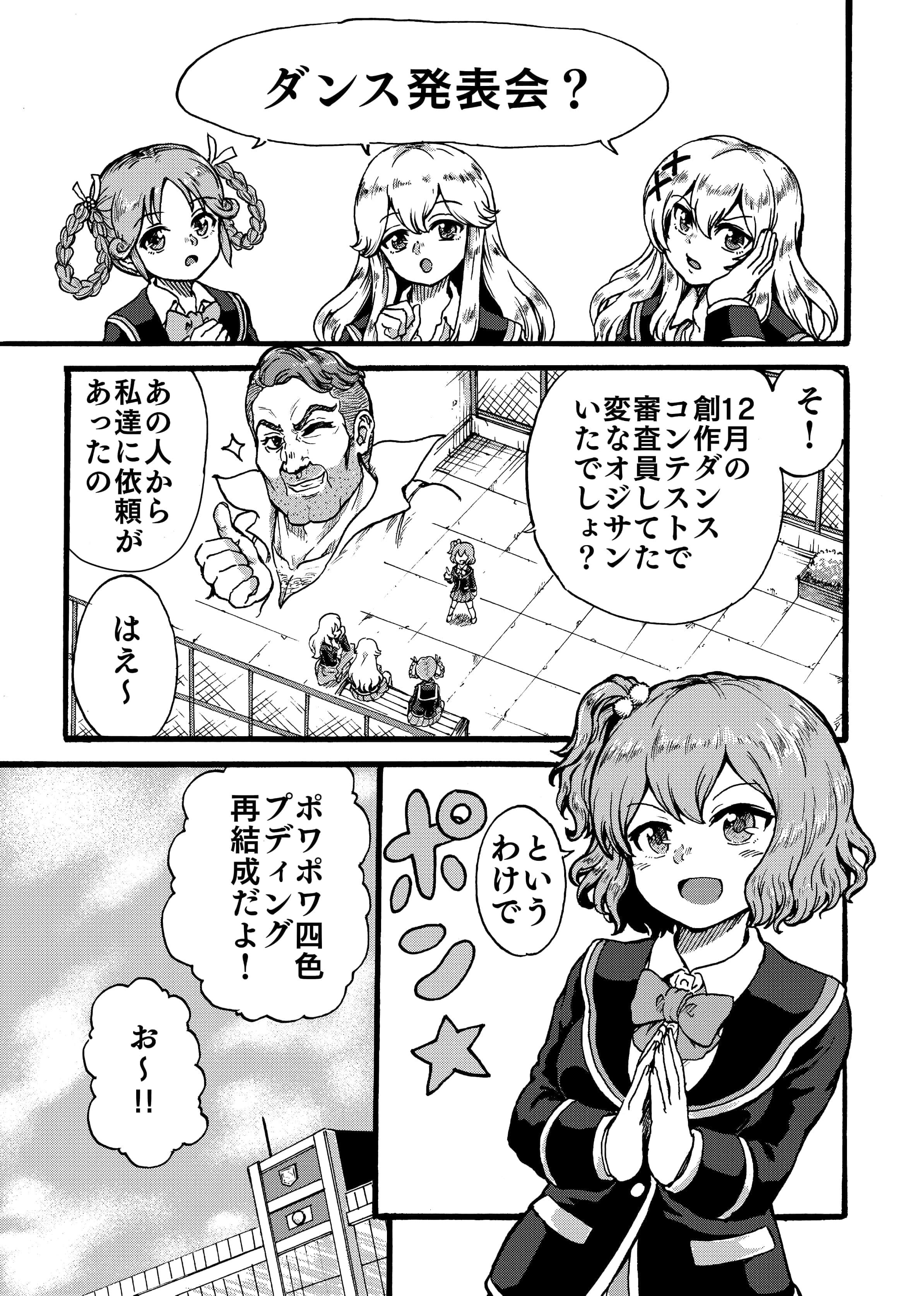 A5/本文モノクロ/30P2019年4月のガルフレオンリー東京で頒布しました。2018年年末の助けてマイヒーローイベントで登場した創作ダンスユニット『ポワポワ四色プディング』の漫画です。夢前春瑚、竜ヶ崎珠里椏、戸村美知留、島田泉の4人チームでダンス発表会に挑むというお話です。