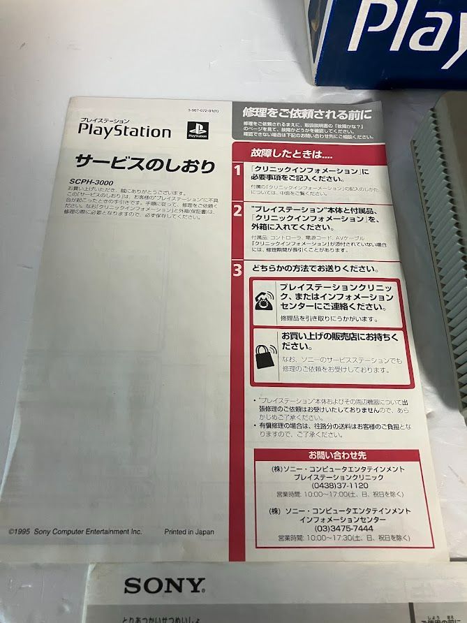 【商品名】  プレステーション1 SCPH-3000 本体 【付属品】  写真に写っているものが全てとなります。 よくご確認ください。 【商品の状態】 ・箱、取説有 ・通電確認問題なし ・本体多少傷汚れ有 ※中古品であることをご理解の上、ご購入をお願いいたします。 ご質問はお気軽にどうぞ。 即購入OKです! 管理番号2