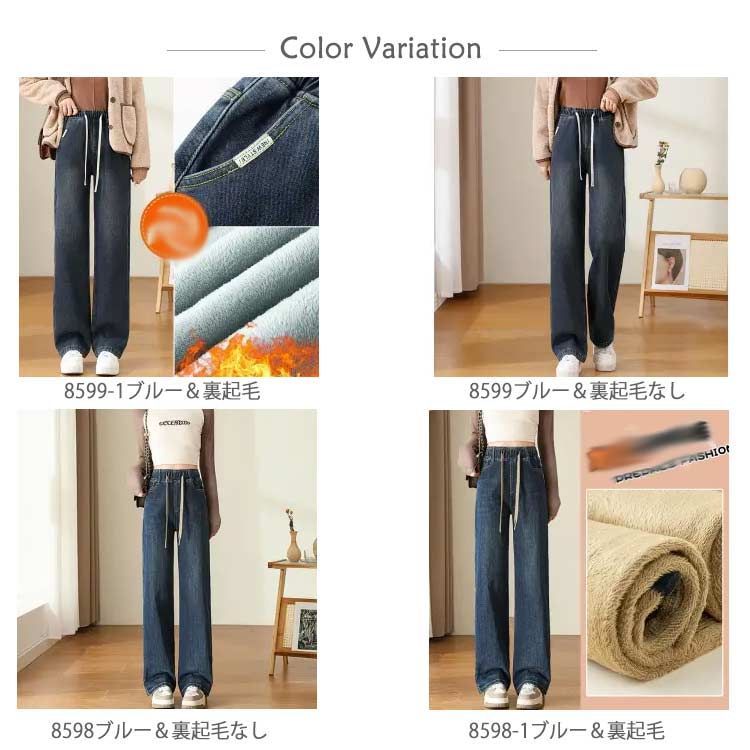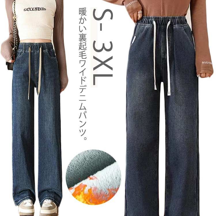 パンツ ワイドパンツ レディース 冬 裏起毛 ゆるフィット デニム ウエストゴム オフィス ジーンズ 裏起毛 レディース ガウチョパンツ デニムパンツ ロングパンツ ボトムス デニム ジーンズ 暖か #dongdong13488