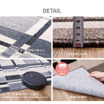 -------------------- こちらの商品は 北海道・沖縄・離島への配送ができません。 -------------------- -------------------- 10時ごろまでの受付で翌3営業日ごろまでに発送予定 *営業日:土日祝日を除いてカウントしてください *受付時間は10時から17時となっております -------------------- モダンな柄の国産防炎ラグ。 〈特長〉 ・防炎加工を施しています 火が点きにくく、万が一火が点いても燃え広がりにくいです。 ・抗菌効果で菌の増殖を抑制し、防臭効果も発揮するので、お子様やペットと暮らすご家庭でも安心してお使いいただけます。 ・厚みは、約1cmです。 ・裏面は、不織布加工で畳や床をキズつけにくくなっています。 ・ホットカーペット・床暖房対応です。 ・安心の日本製です。 ・カラーは、ベージュとグレーの2色展開です。 約130×190cm ■生産地:日本 ■素材・成分:表面:ポリプロピレン100% 裏面:不織布 ※防炎。防ダニ。抗菌・防臭。 ホットカーペット・床暖房対応。 ■折りたたみでお届けします。 【画像について】 ・商品は、モニターによって色合いが異なって見える場合があります。 【ご使用上の注意】 ・滑らかな肌触りが特徴の商品のため、ラグのご使用中やご使用後、足や床が滑りやすく感じたり床の状態によってはラグ自体が動きやすくなったりする場合があります 市販の滑り止めシートを併用いただくなどしてご使用中の転倒に注意してください。 ----------- 着日指定をお受けすることができません 発送後、お問い合わせ番号をご連絡いたしますので 配送会社と調整をお願いいたします -----------
