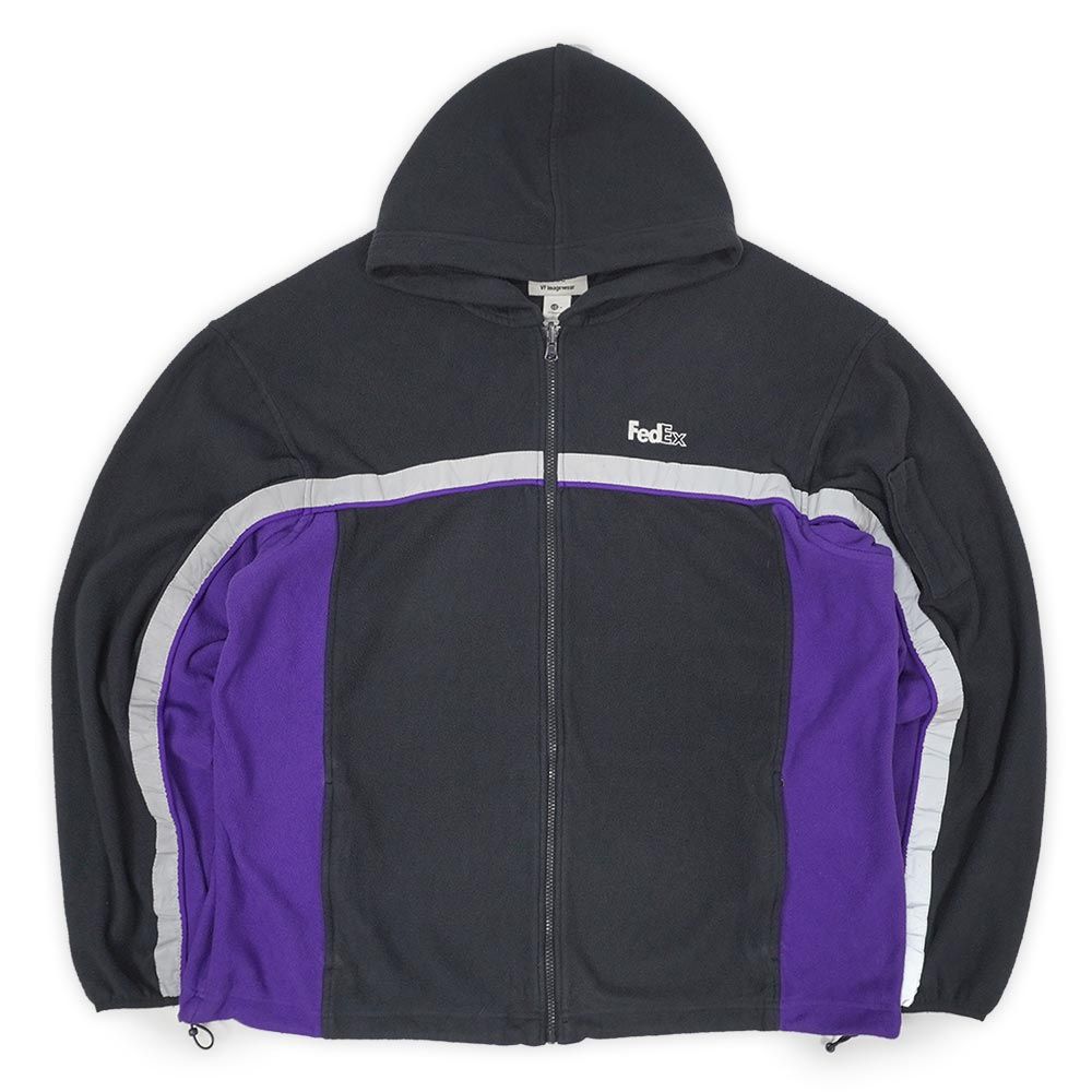 フェデックス FedEx 00s 2000年代 フリースフーディージャケット パーカー リフレクター 企業 ロゴ USA ヴィンテージ アメリカ 古着 メンズ アウター ユニフォーム ネイビー パープル XL【中古】