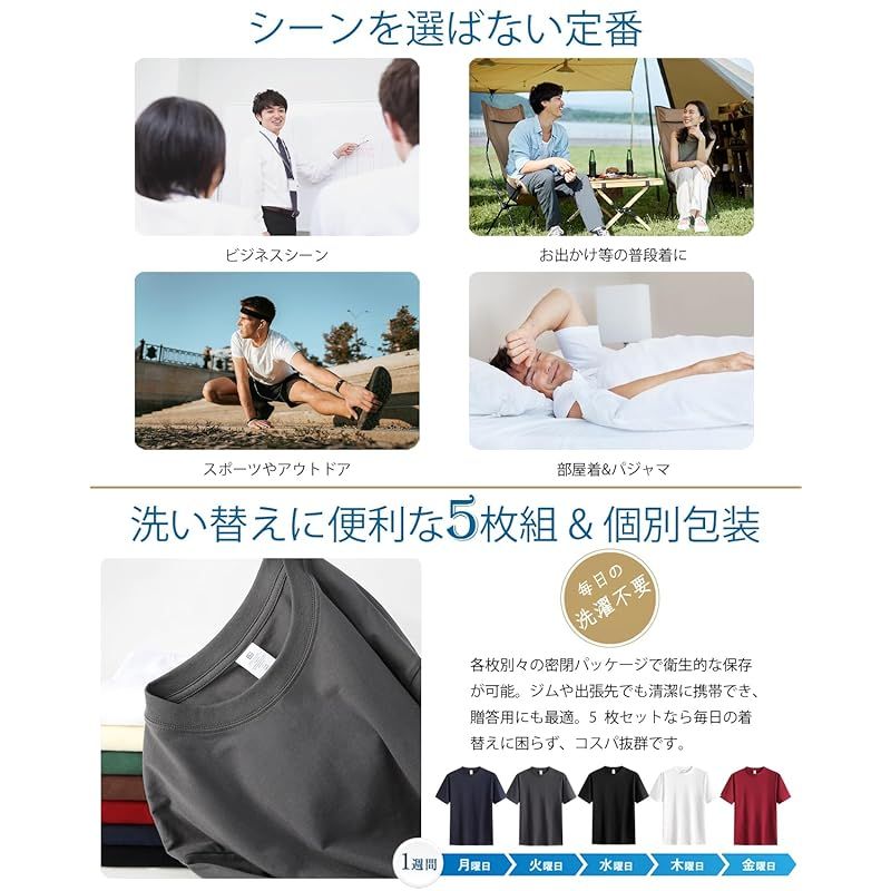 [SHOREKEEPER] インナーシャツ 5枚組 コームドコットン100% Tシャツ メンズ 半袖 ゆったり やわらか肌着 丸首 抗菌 防臭 無地 速乾 通気性 複数色選び 男女兼用 オールシーズン (JP, アルファベット, XL, ベーシックセット 0