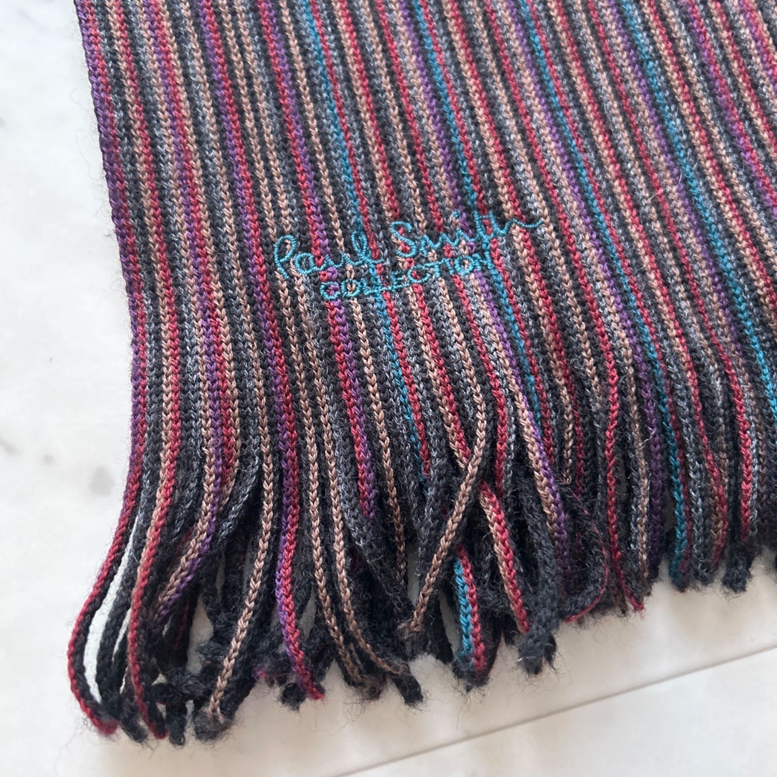 Paul Smith ポールスミス マルチカラー マフラー 保存袋付き 美品 ウール100 フリンジ付き ドイツ製 メンズ レディース
