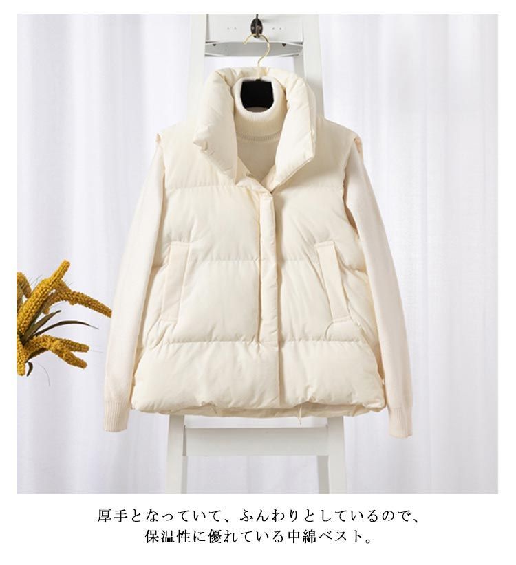 中綿ベスト レディース ジレ 立ち襟 ダウン風 アウター 秋冬 ジャケット ノースリーブ コート スタンドカラー ダウンベスト 綿入れ 厚手 冬 前開き 防寒 あったか 秋 冬 大きいサイズ おしゃれ#sour3562