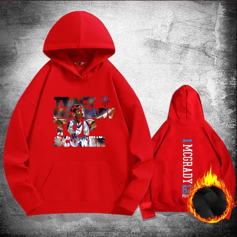 バスケ ティーマック トレイシー・マクグラディ 1番 62得点 プリント パーカー 記念 フーディ メンズ スウェット 起毛あり レッド