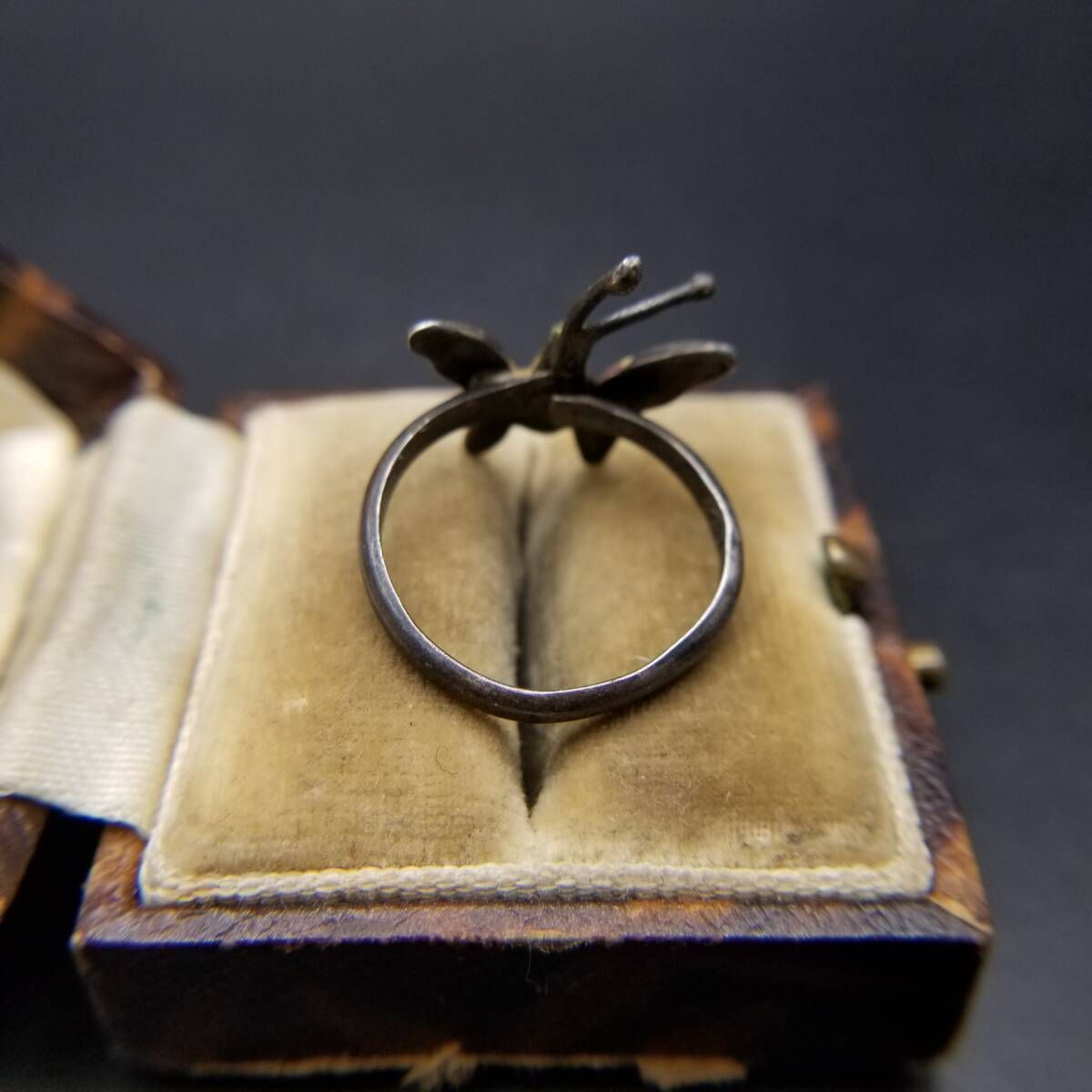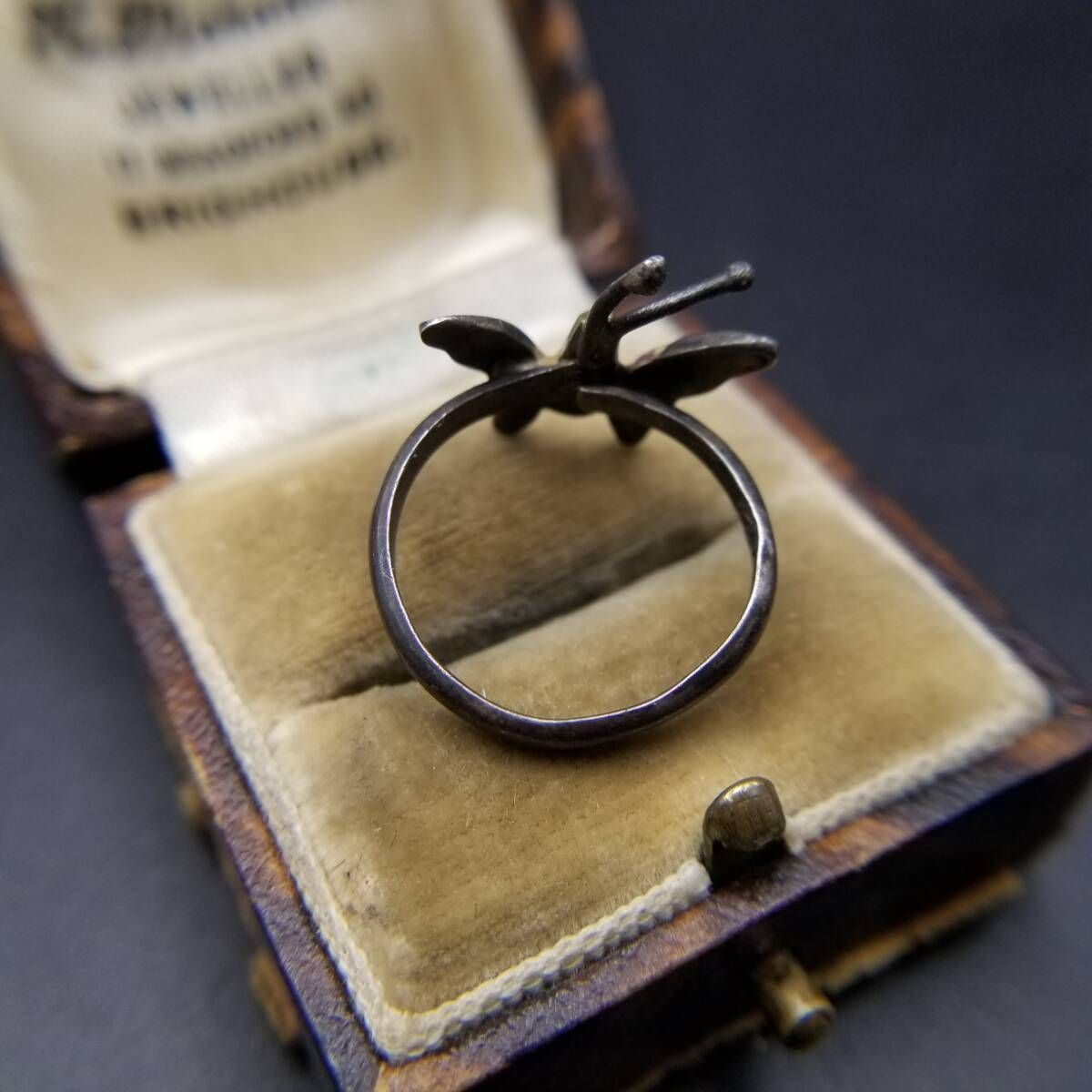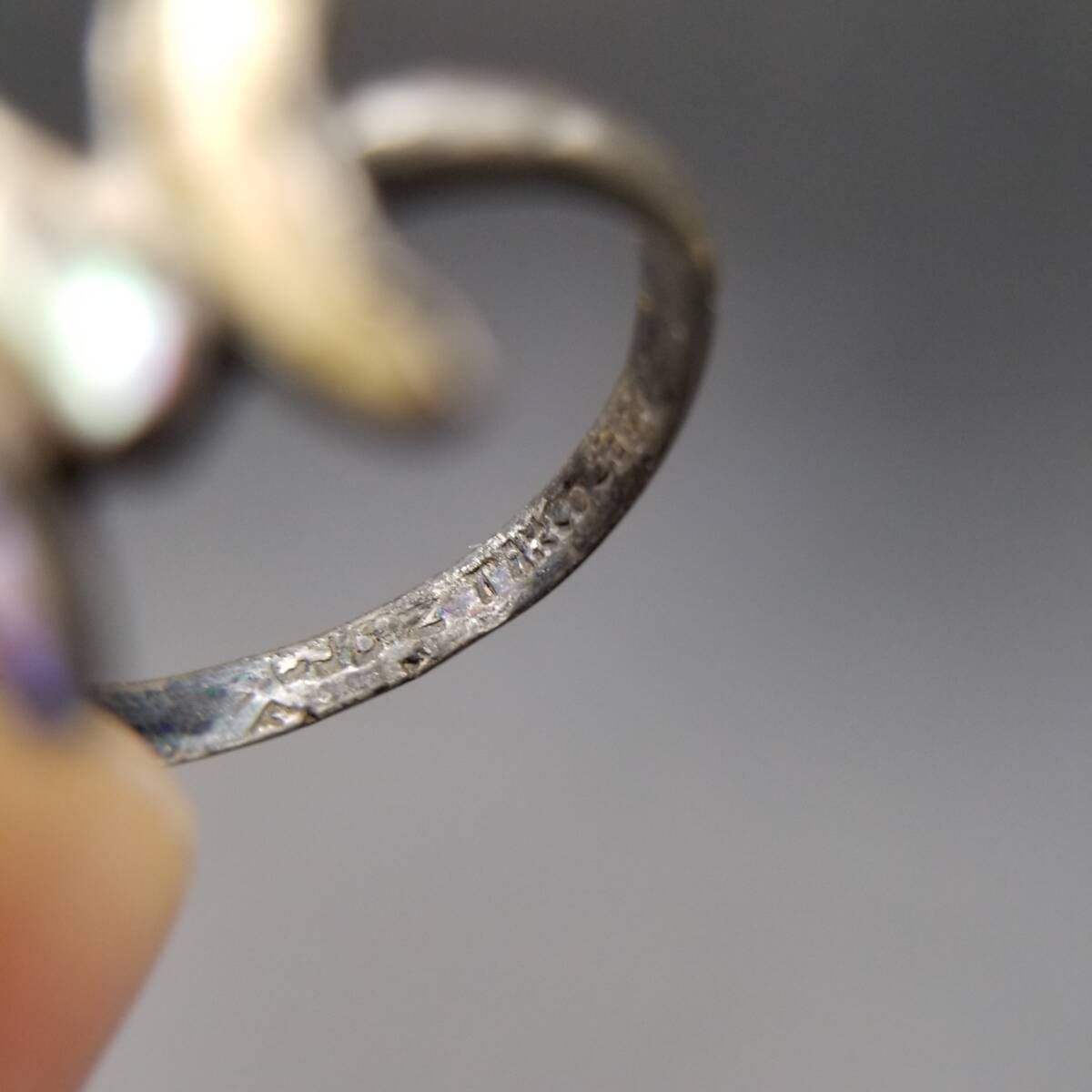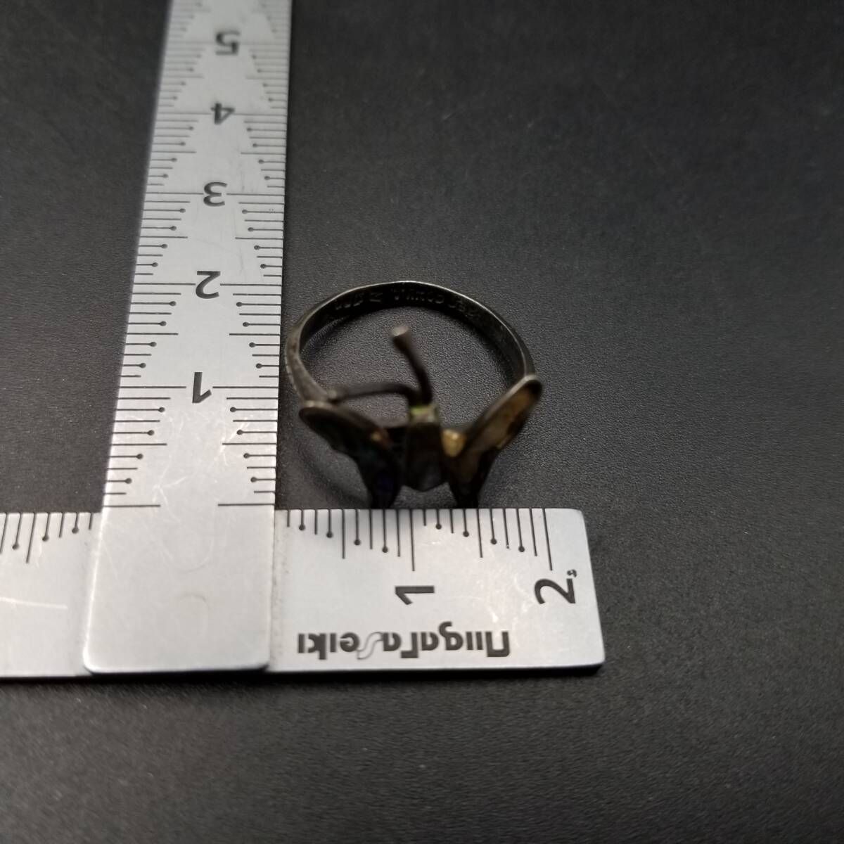 40'50's メキシコ 925 シルバー 蝶 アバロンシェル インレイ ヴィンテージ リング 銀 指輪 Taxco タスコ 華奢 昆虫モチーフ Y23-G