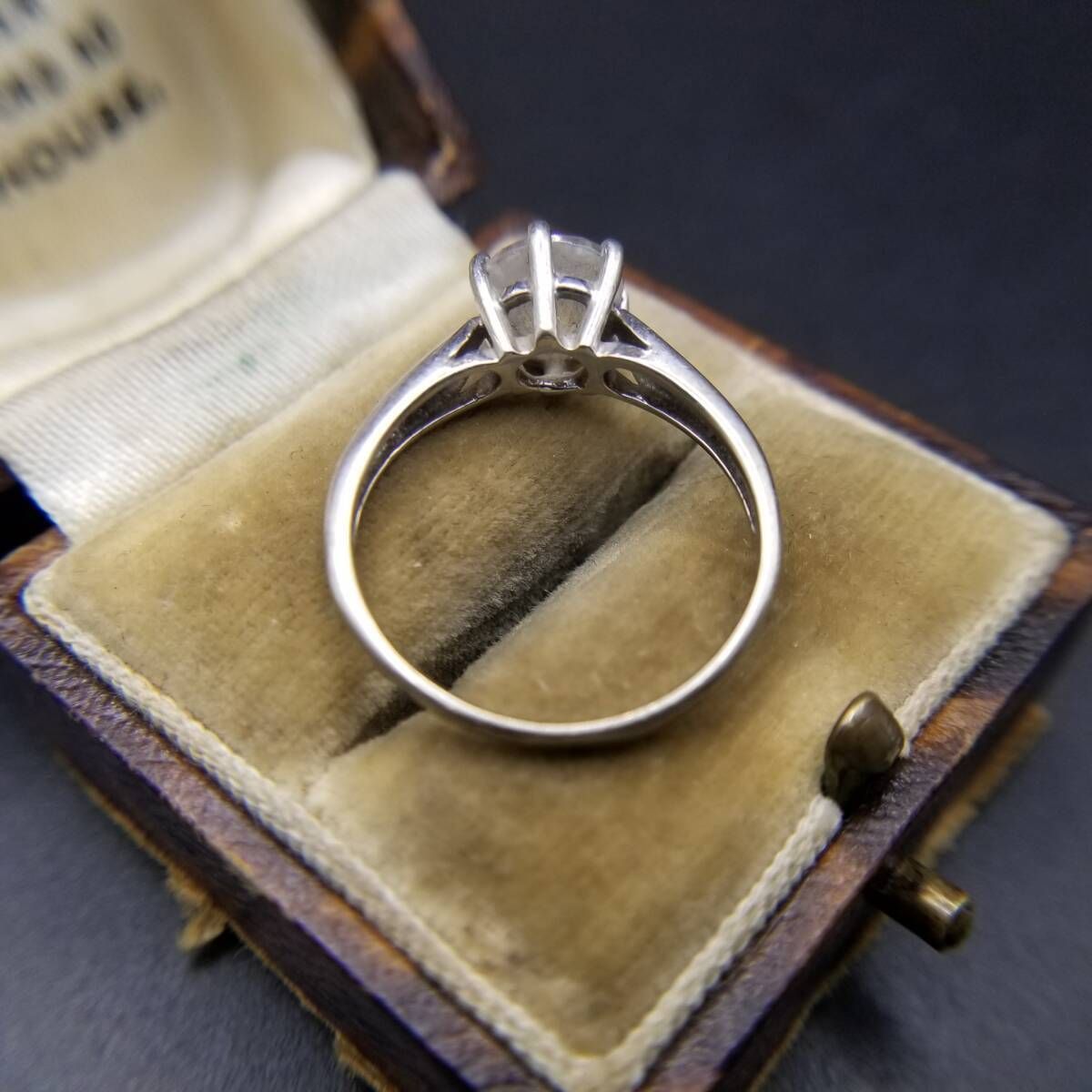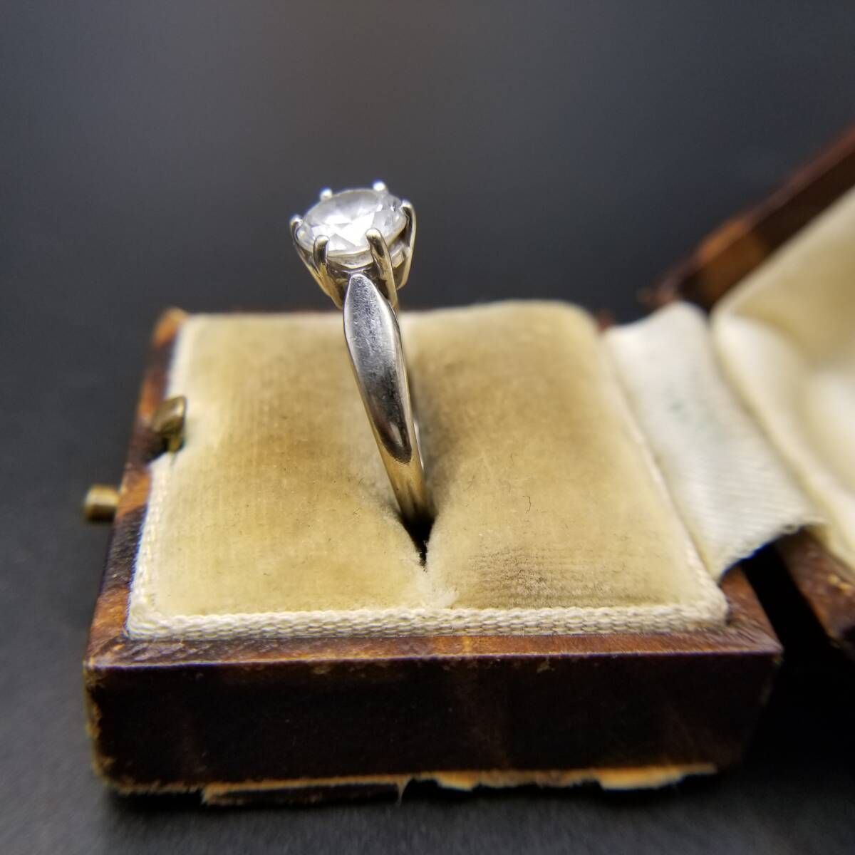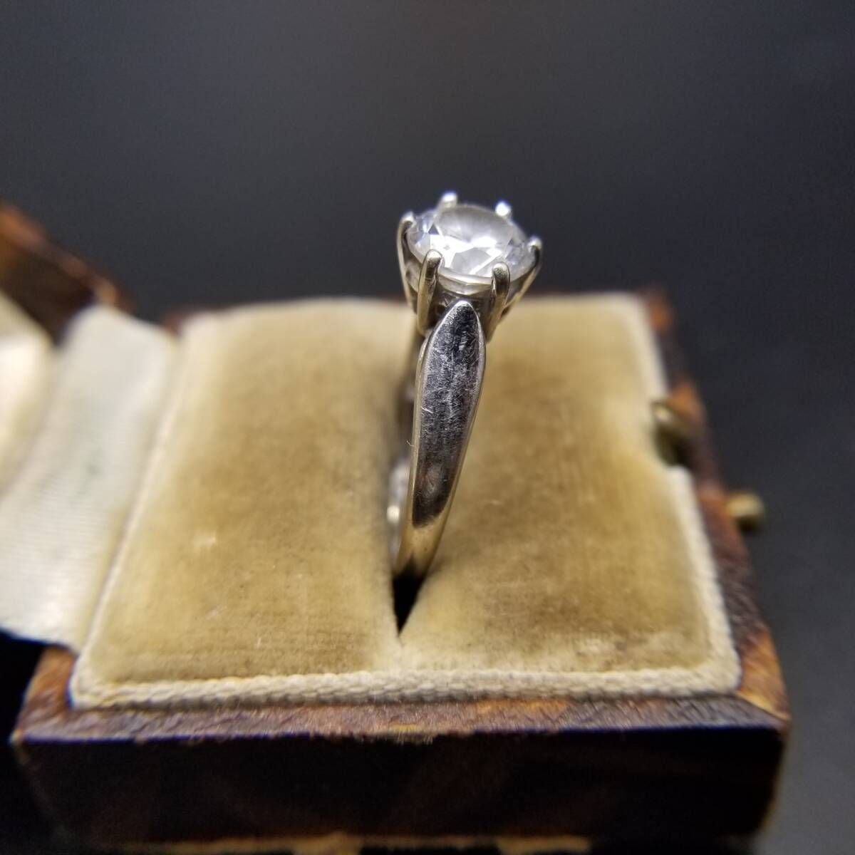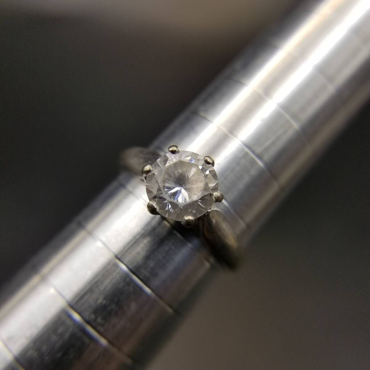 キュービックジルコニア ラウンド ソリテール シンプル ヴィンテージ リング 指輪 シルバートーン 定番 上品 Y23-G