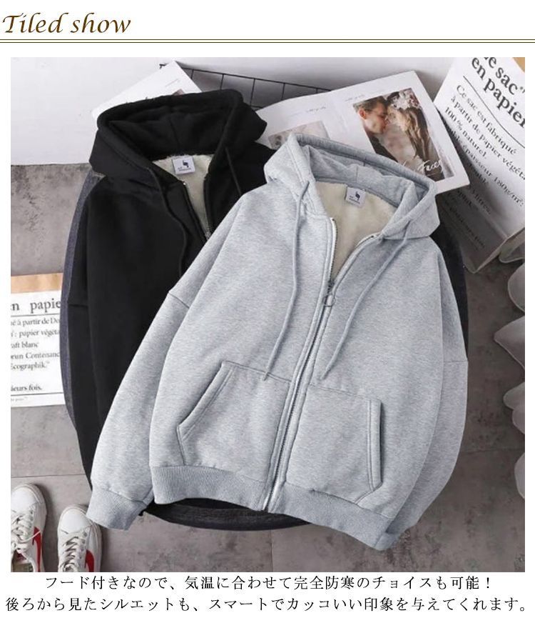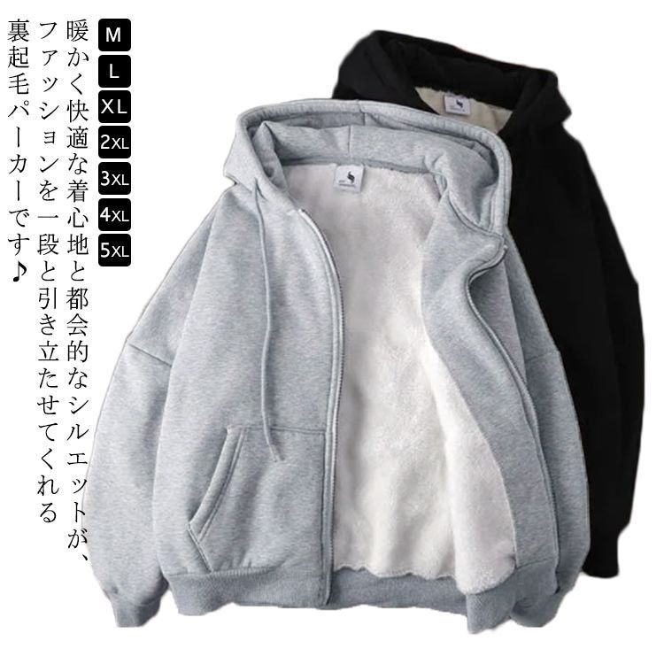 裏起毛 パーカー メンズ レディース 無地 ジップ 大きいサイズ 厚手 裏ボア 裏フリース ゆったり おしゃれ ブラック アウター スウェット 黒 グレー 送料無料#wunib1281