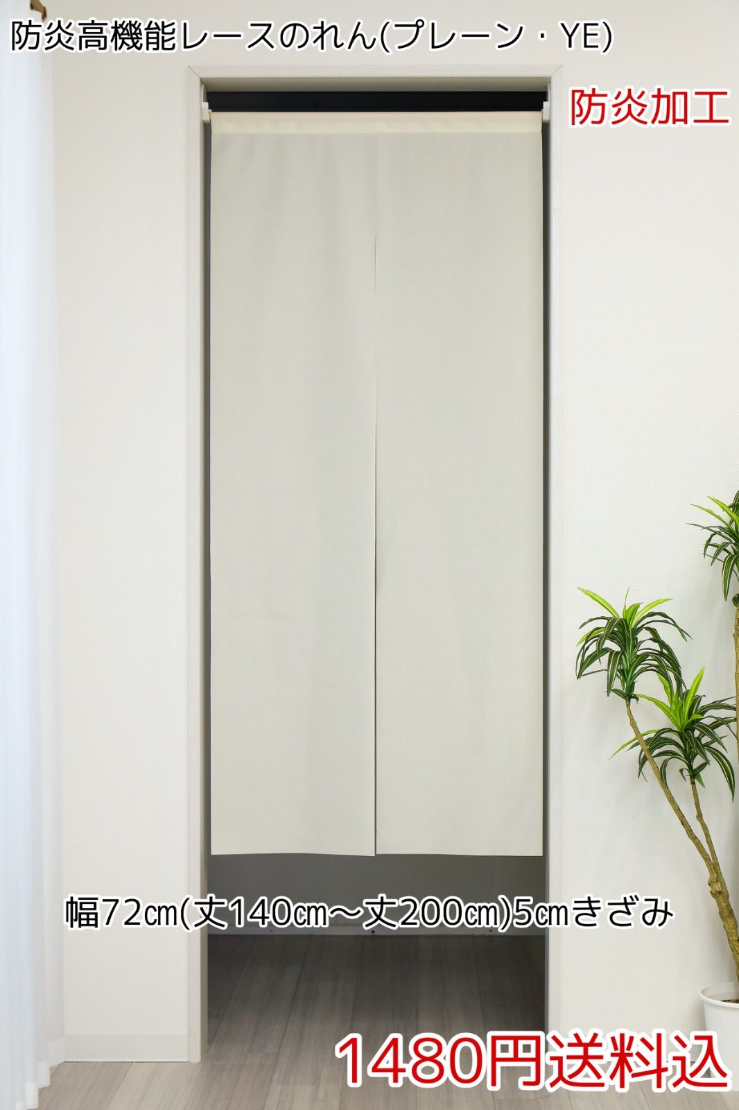 ★全13サイズ★防炎・高機能レースのれん(プレーン・YE)