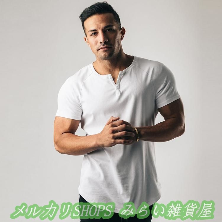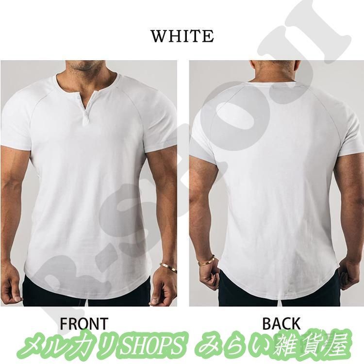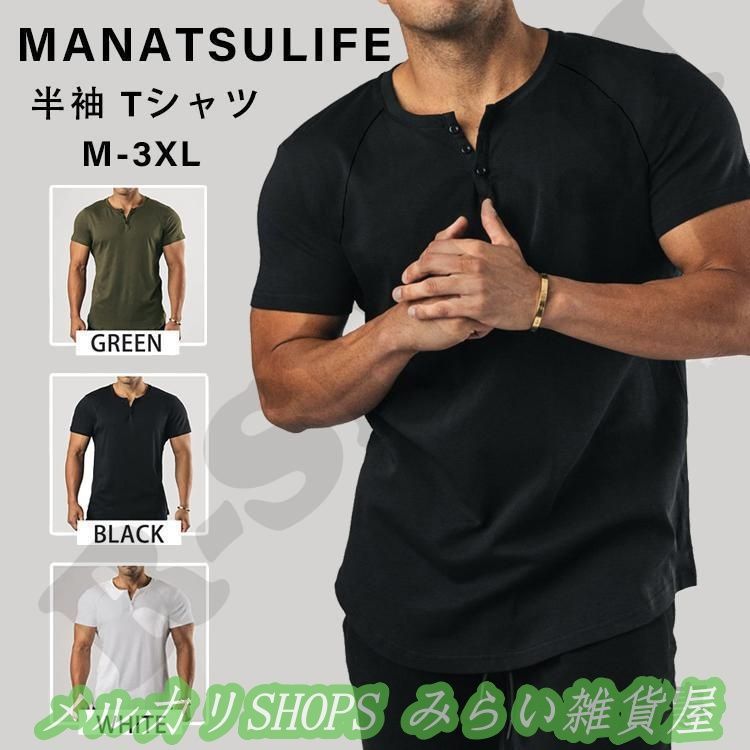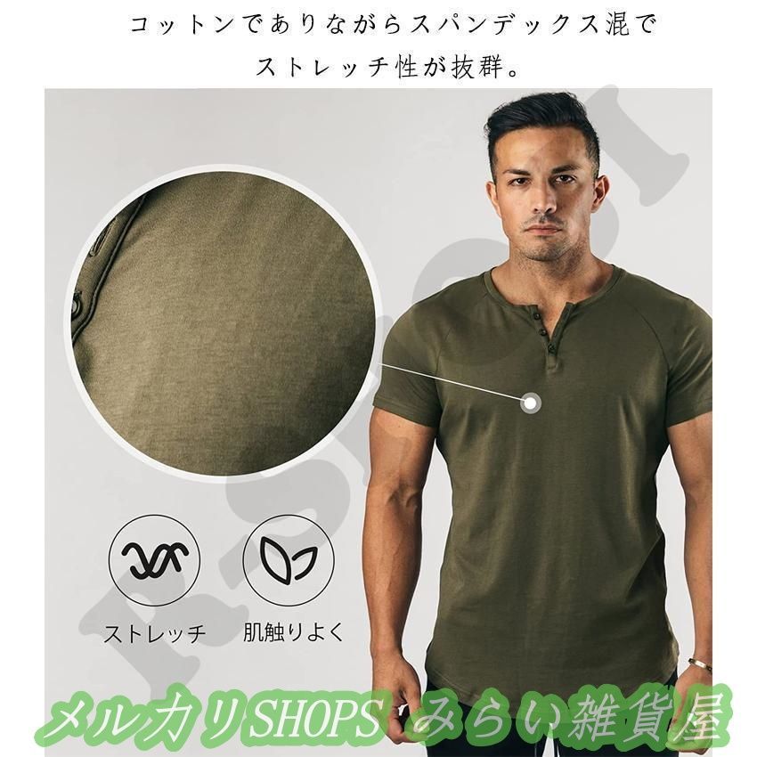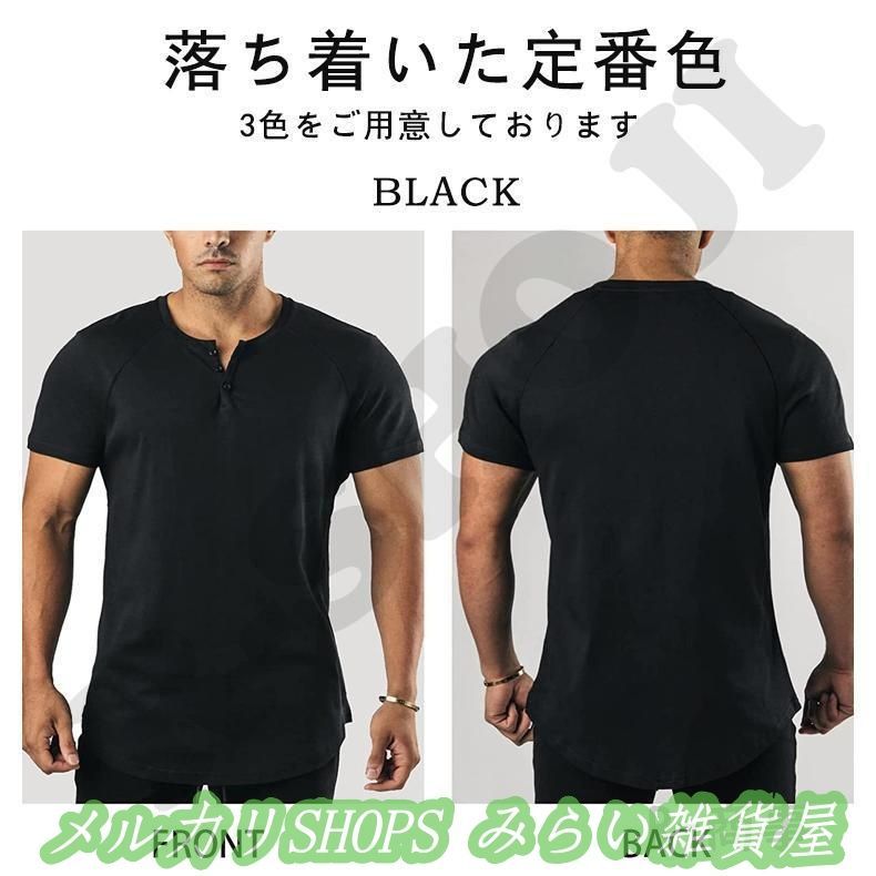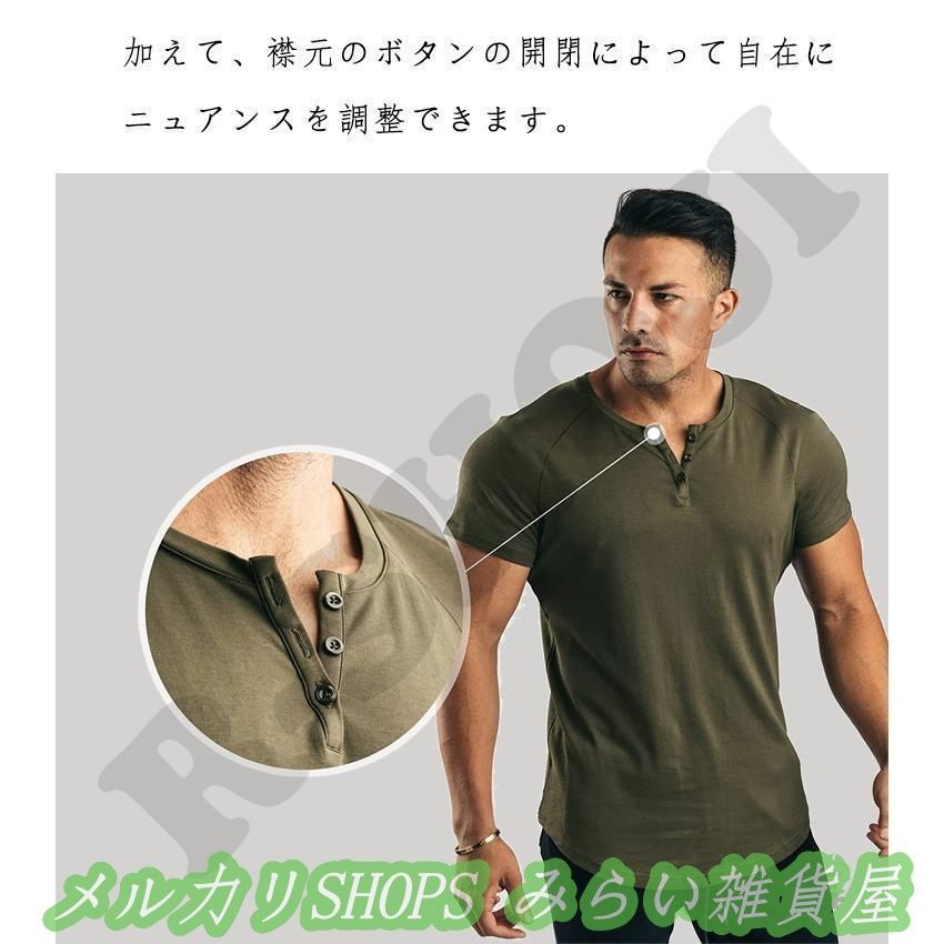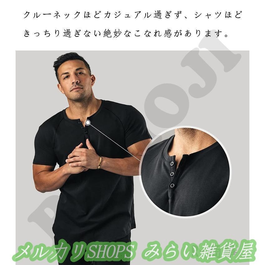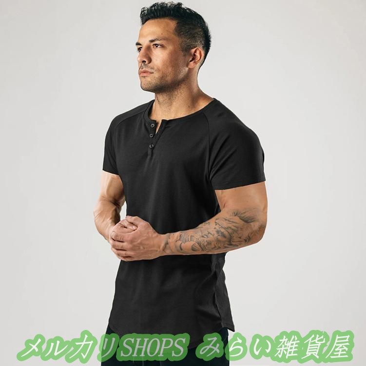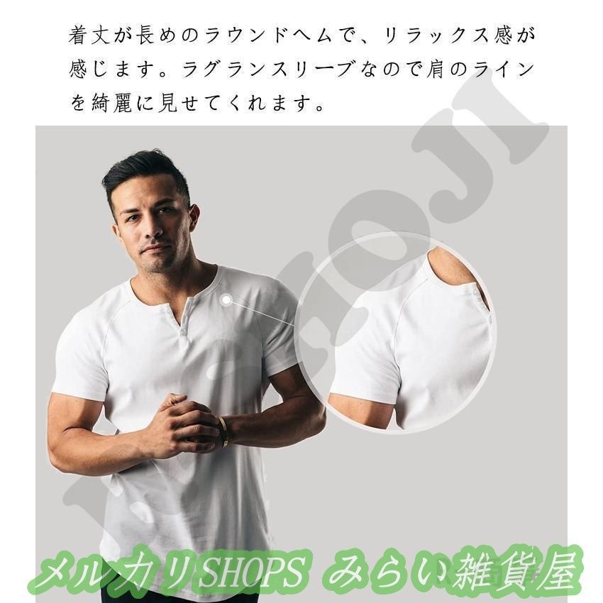 半袖 Tシャツ ヘンリーネック ラグランスリーブ メンズ ボタン 丸首 レイヤード 無地 カットソー スポーツウェア トレーニングウェア 春夏1111