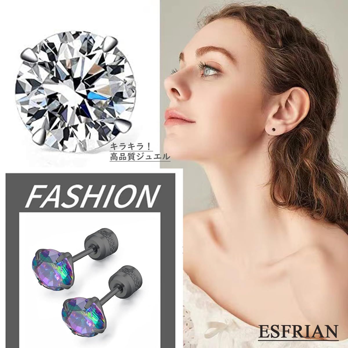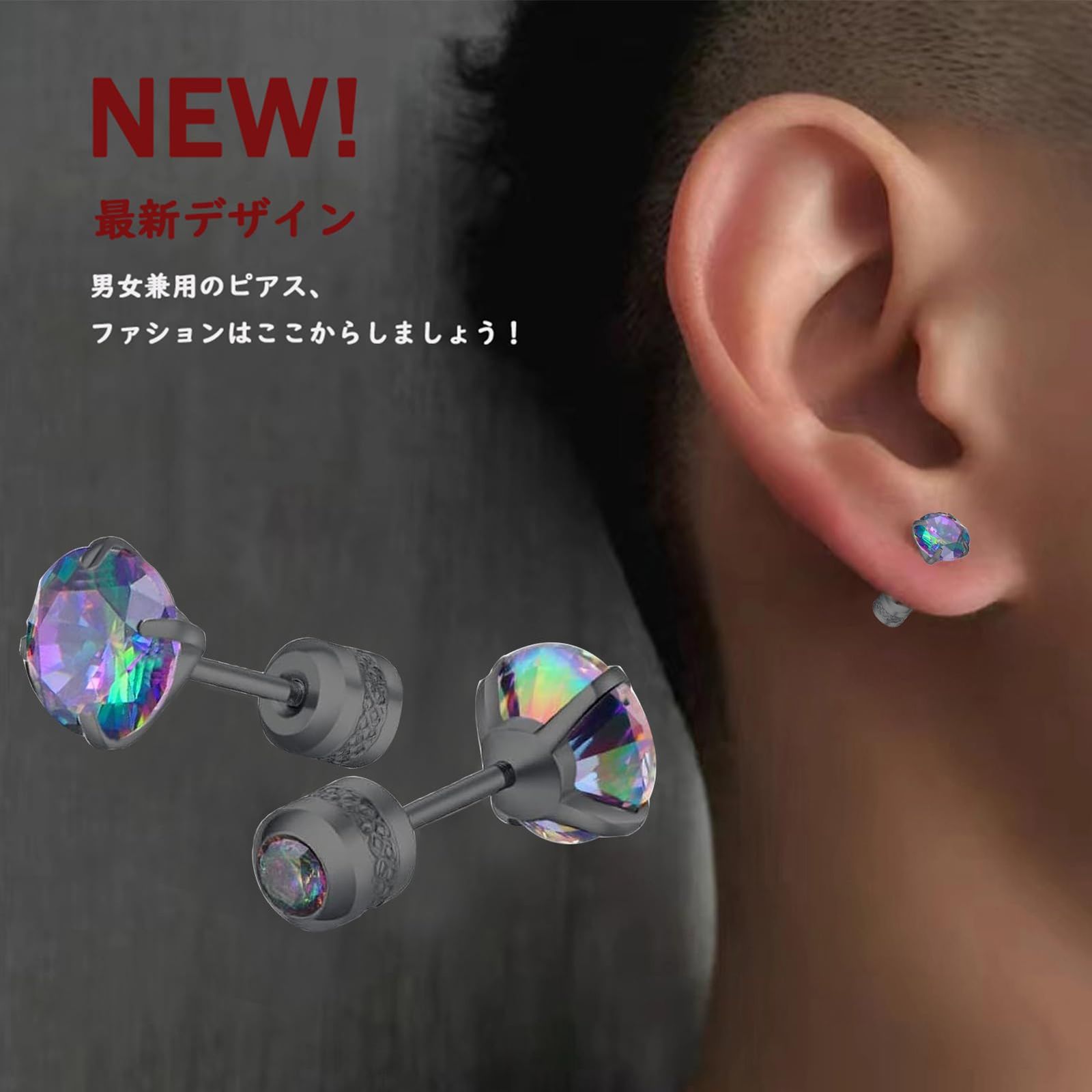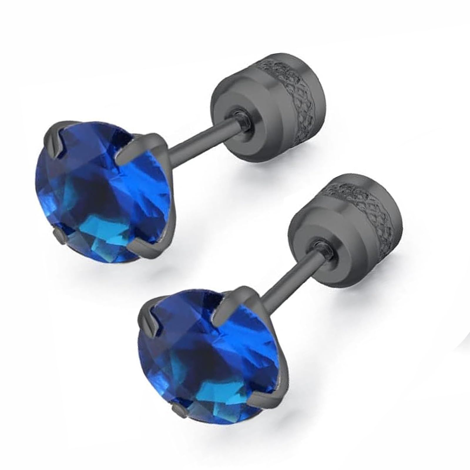 ピアス レディース 石 シンプル 5mm 黒 サージカルステンレス スタッドピアス つけっぱなし ネジ式 ジュエリー 男女兼用 両耳用 キャッチ 人気 おしゃれ プレゼント ファーストピアス ブラック 2個セット (5mm ブラック2) (ブルー 5MM)