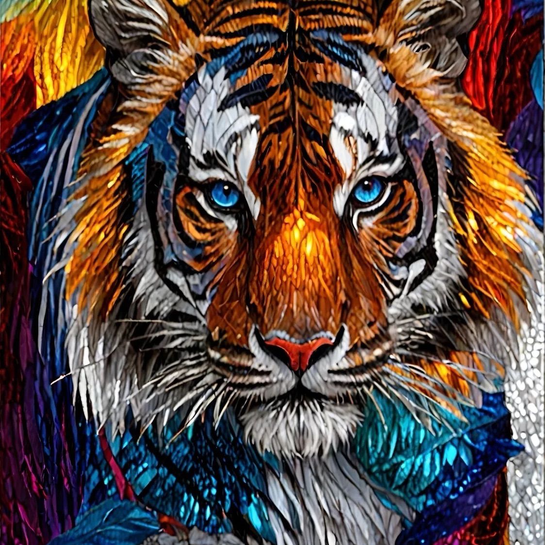 未来を輝かせる虎 幸せの 風水ヒーリング 開運絵画グラフィックアート 額縁付き