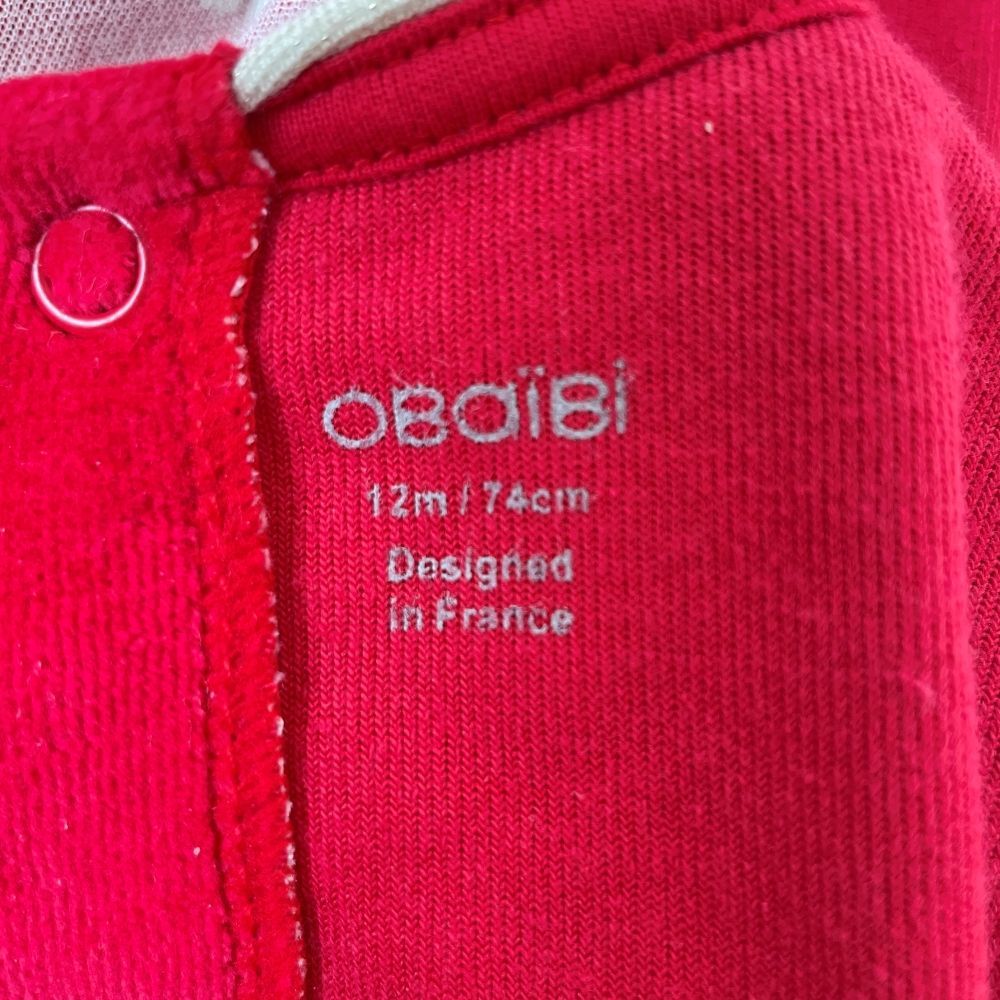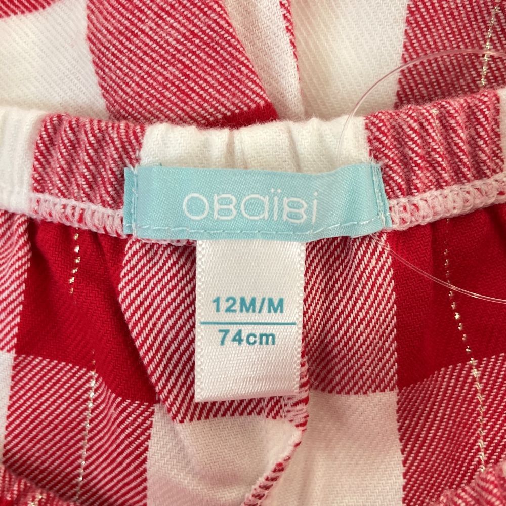 ap11525 OBAiBi オバイビ BABY ベビー トップス ズボン セットアップ 70 12M 74cm レッド クリスマスツリー チェック ストレッチ 長袖 12ヶ月 OBAÏBI
