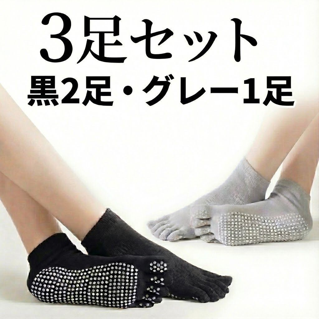 ヨガやピラティスにぴったりの、滑り止め付き5本指ソックス 3足セットです。
