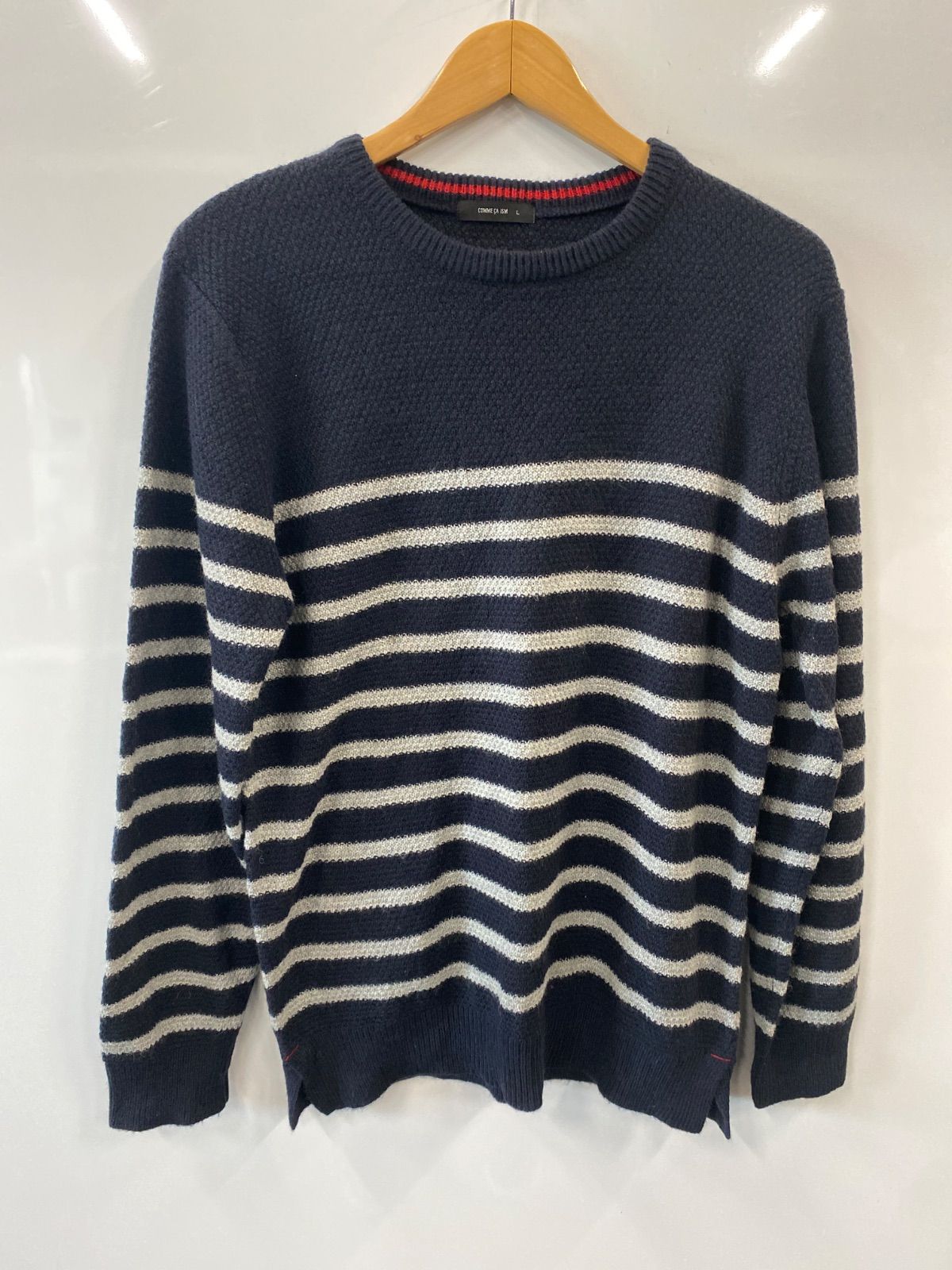 ピA162●COMME CA ISM●コムサイズム●ニットセーター●クールネック●ボーダー●メンズ●sizeL●黒×グレー