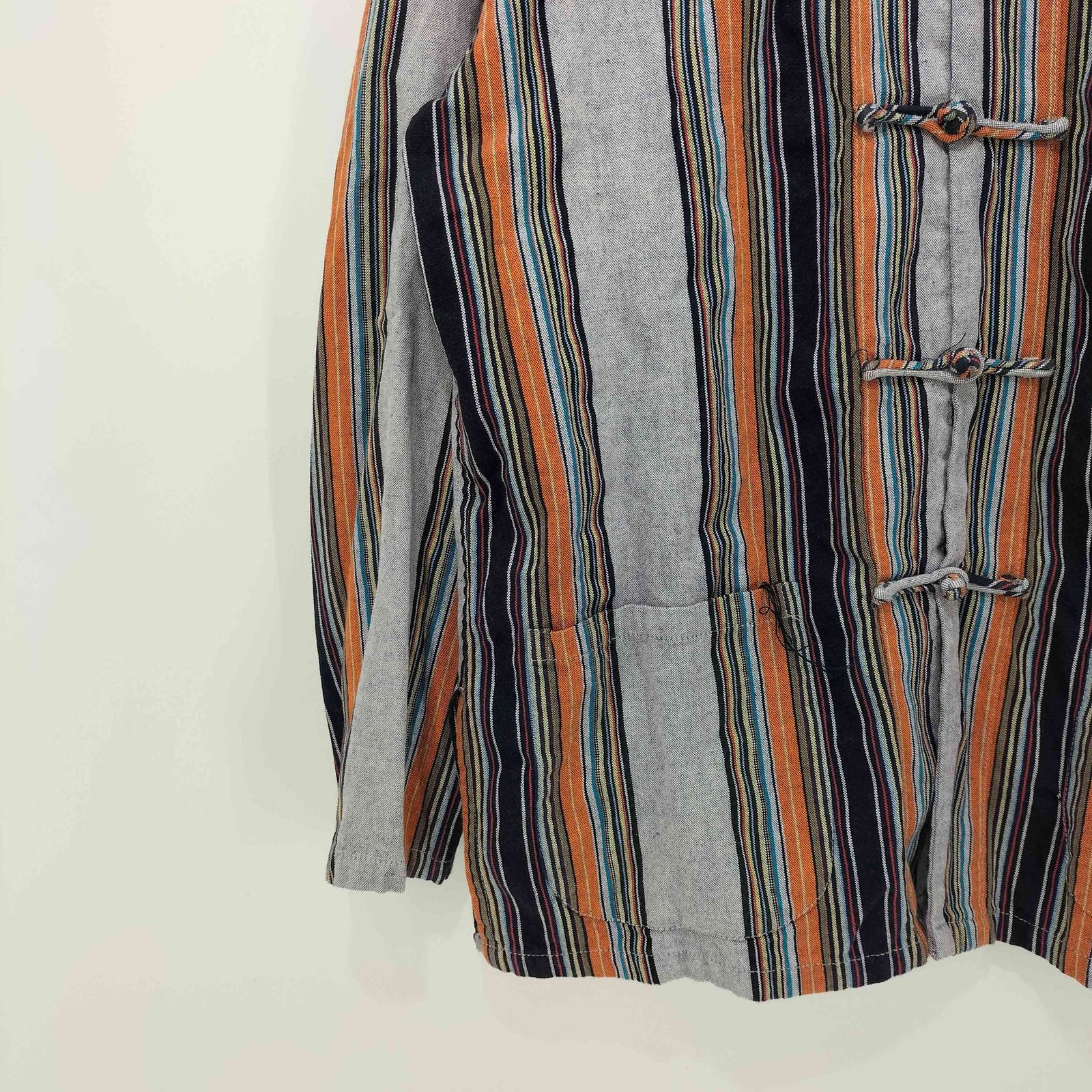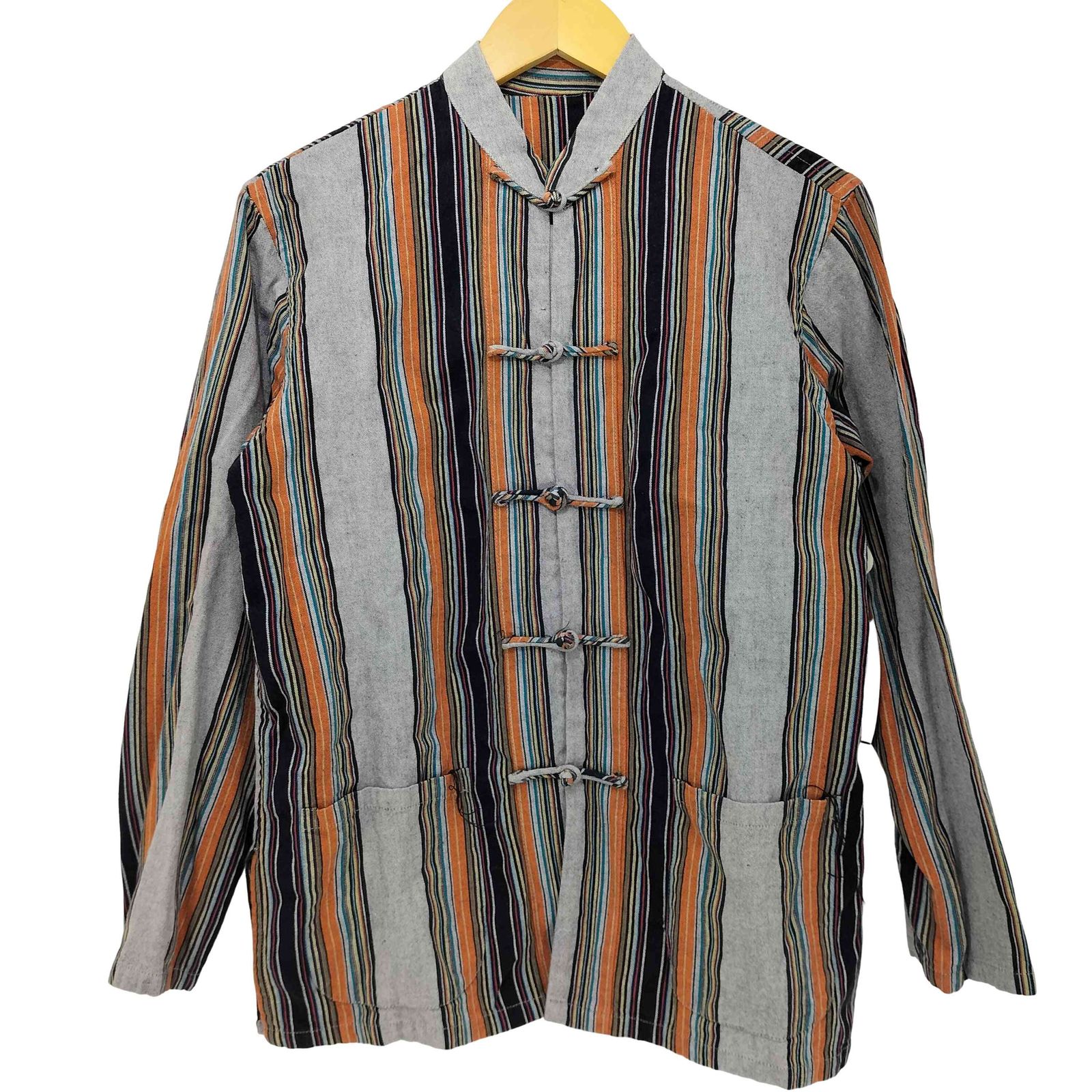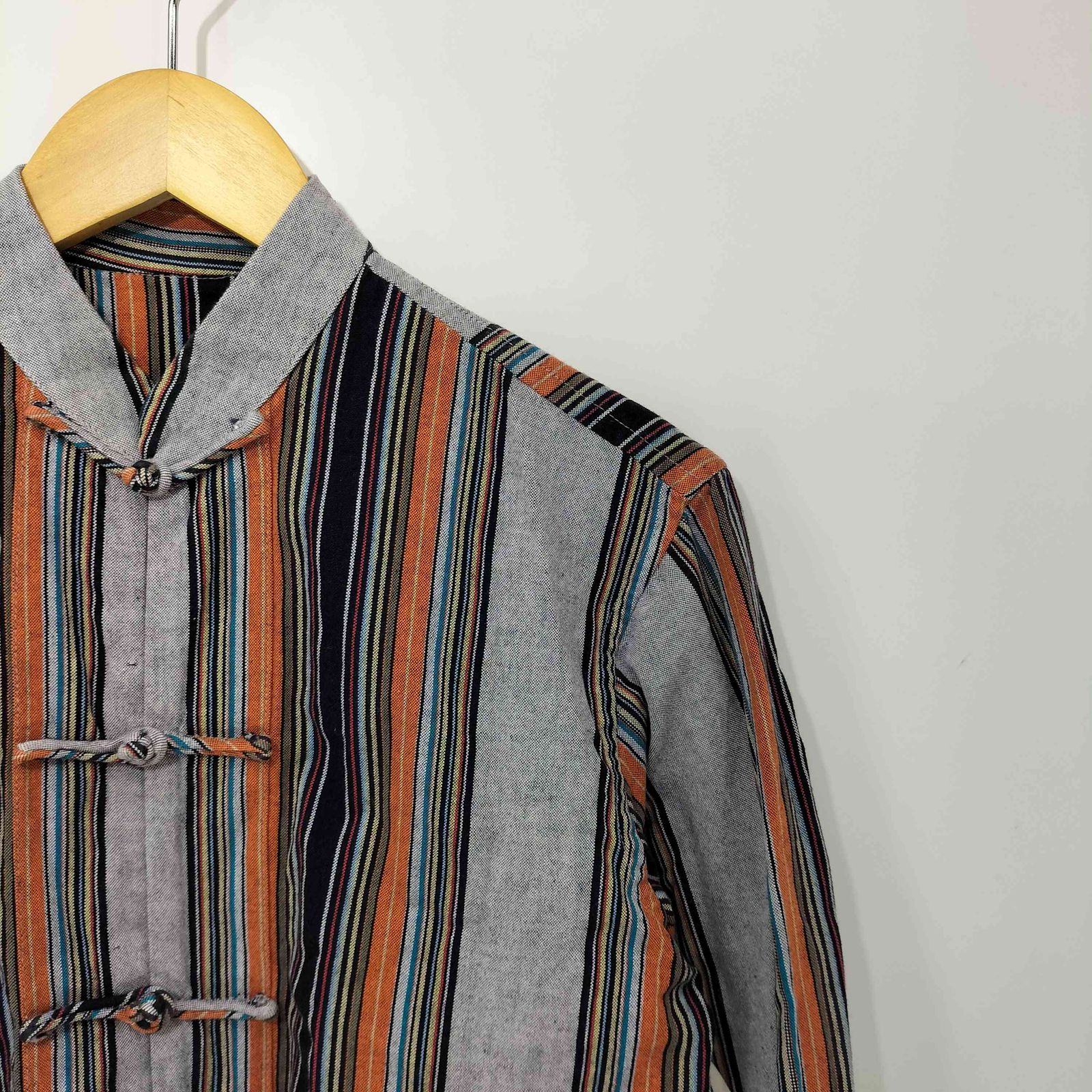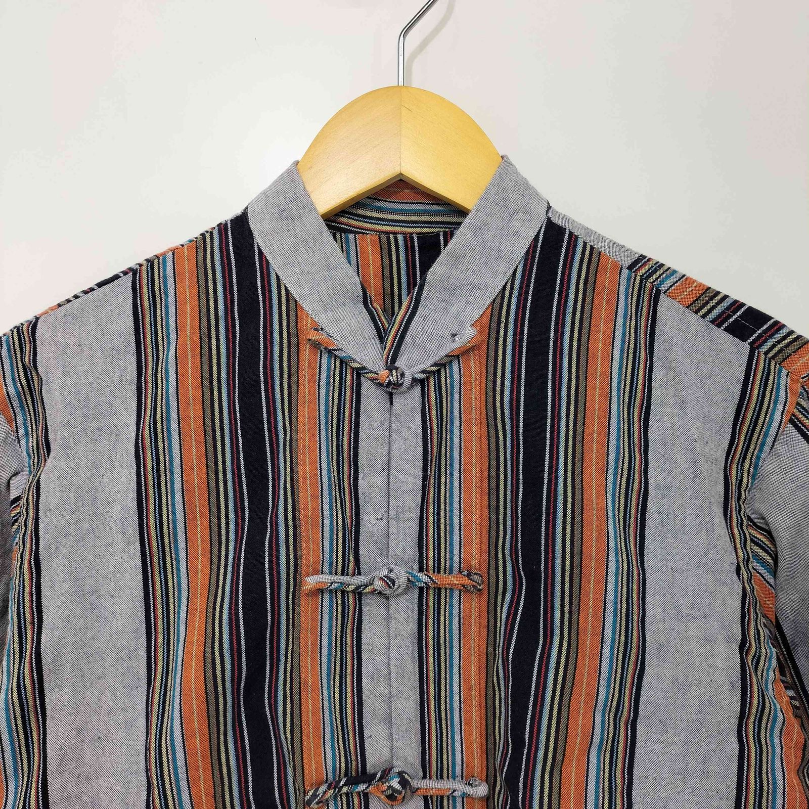 ユーズドフルギ USED古着 マルチカラーストライプ チャイナシャツ メンズ 表記無