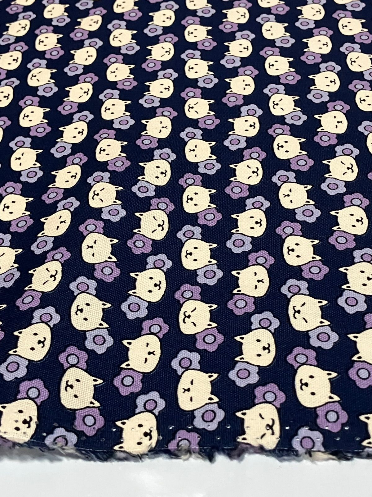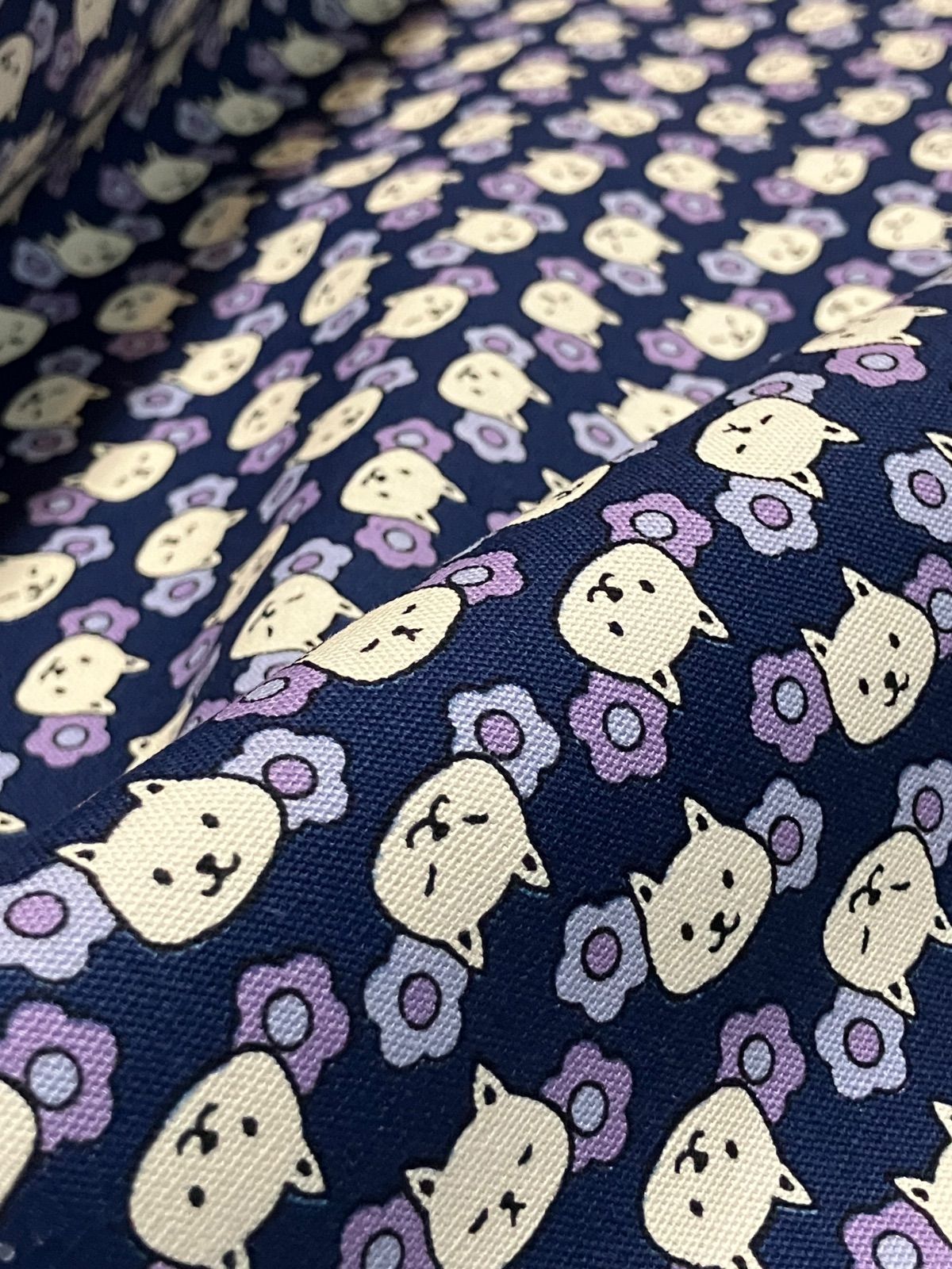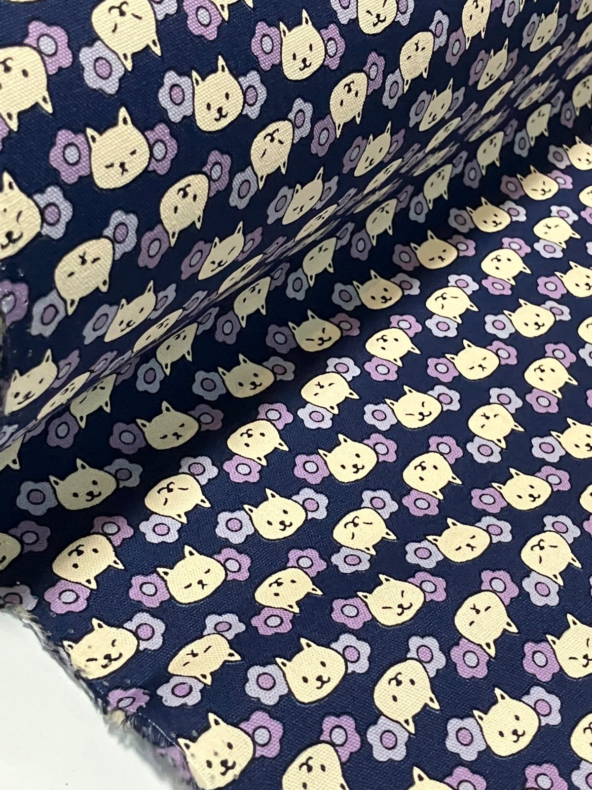 2m 日本製 猫柄 オックス生地 ネイビー 生地